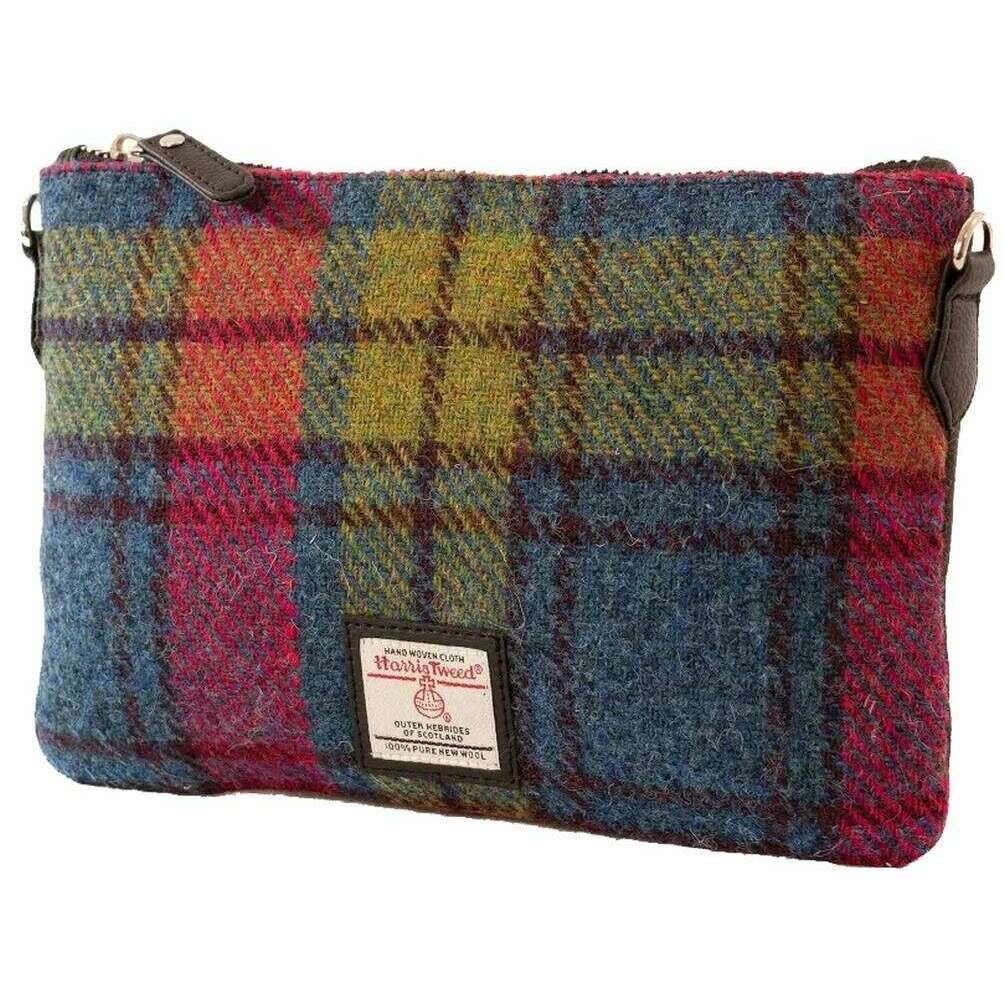 Pochette zippée en tweed Maccessori Harris - Rose/Bleu