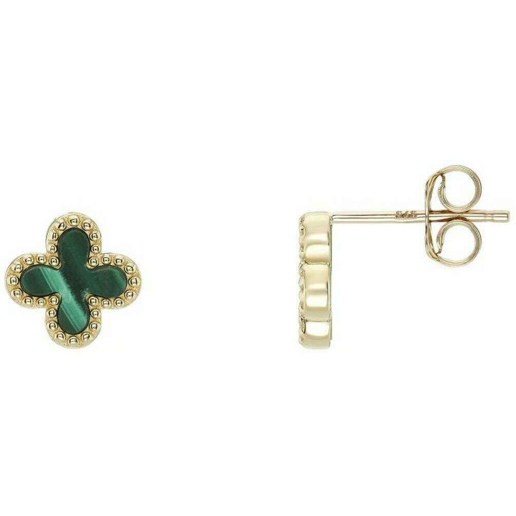 Mark Milton Boucles d'oreilles à tige en forme de fleur de malachite - Or jaune/Vert