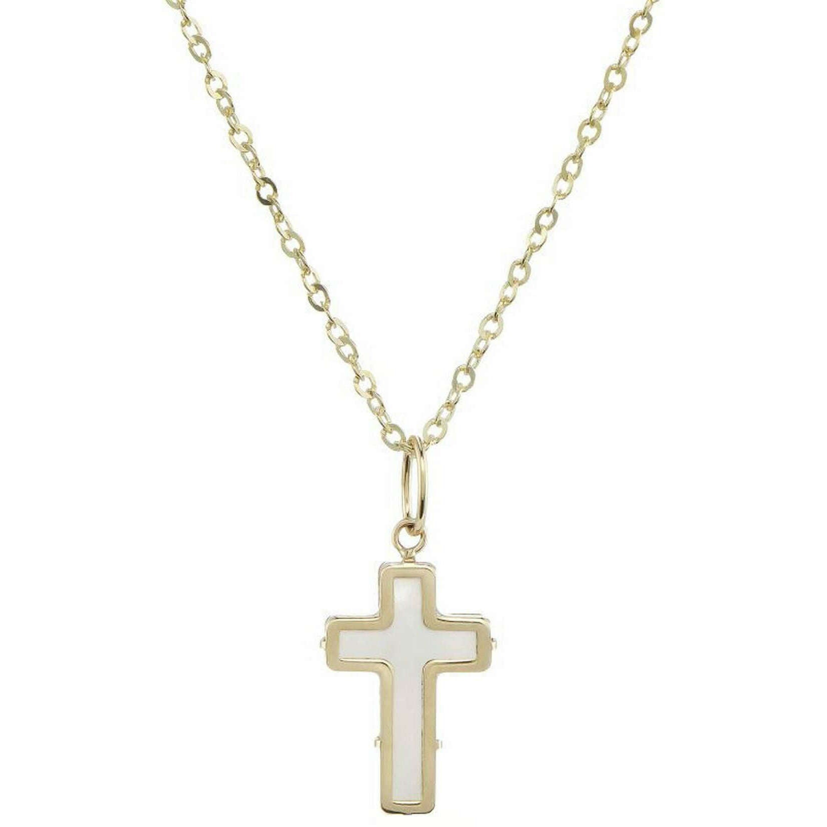 Fabriqué à partir d'or 9 carats, ce pendentif croix en nacre pour femme en or jaune/blanc du designer Mark Milton. Il mesure 46 cm (longueur). Tous les pendentifs sont livrés avec un emballage Mark Milton. Le pendentif croix en nacre Mark Milton - Or jaune/blanc comprend un simple pendentif croix en pierre de nacre sur une chaîne en or, ce collier est unique et a un design accrocheur, parfait à porter au quotidien ou comme cadeau à un être cher.