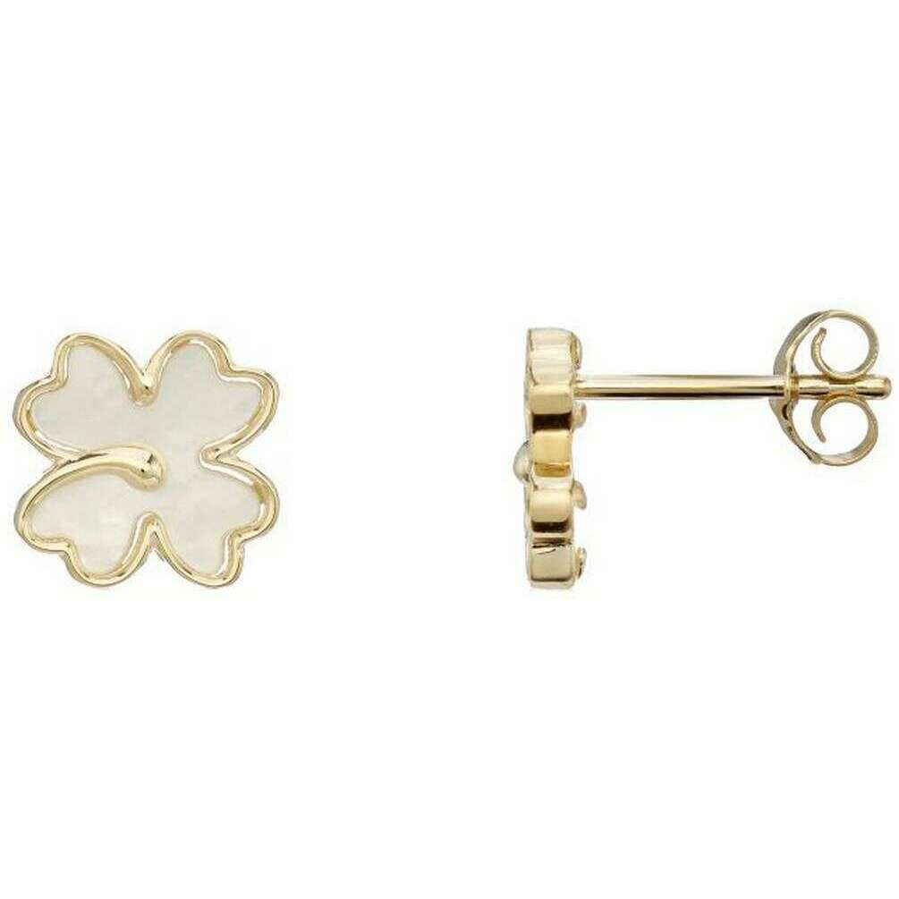 Mark Milton Boucles d'oreilles à tige en forme de trèfle à quatre feuilles en nacre - Or jaune/Blanc