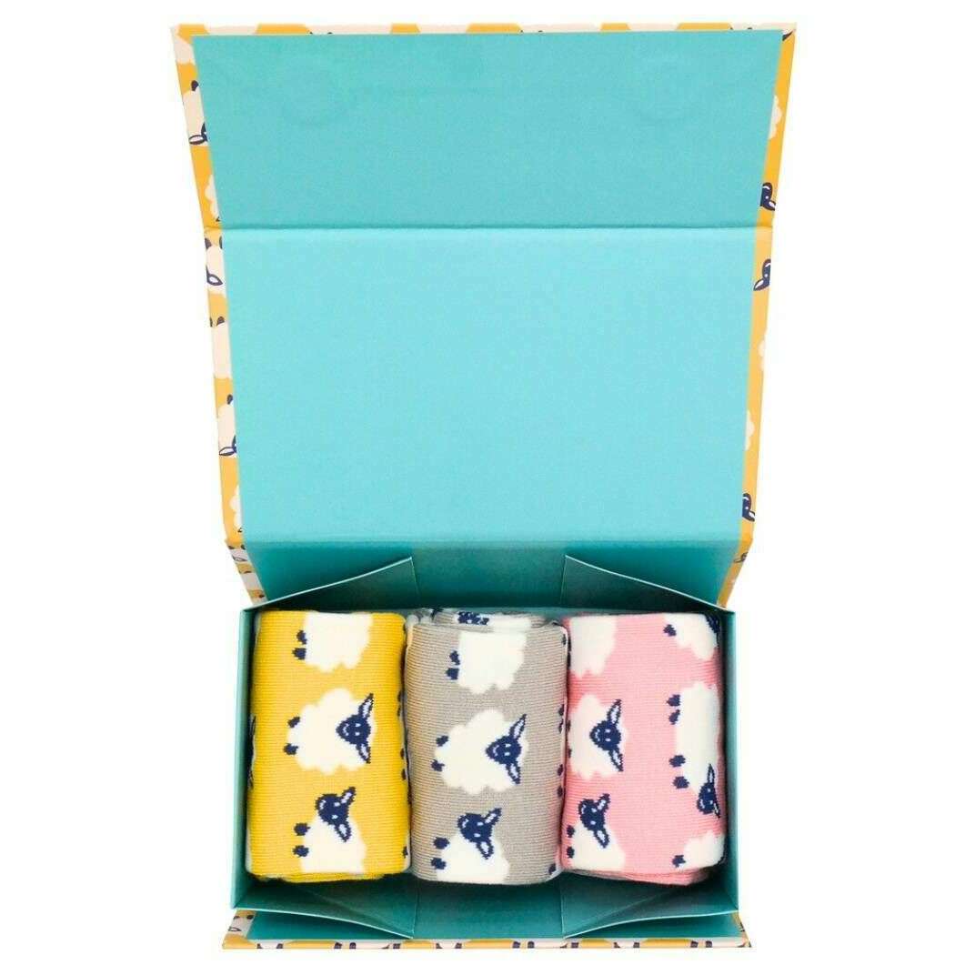 Miss Sparrow London Lot de 3 boîtes à chaussettes Happy Sheep - Jaune/Gris/Rose