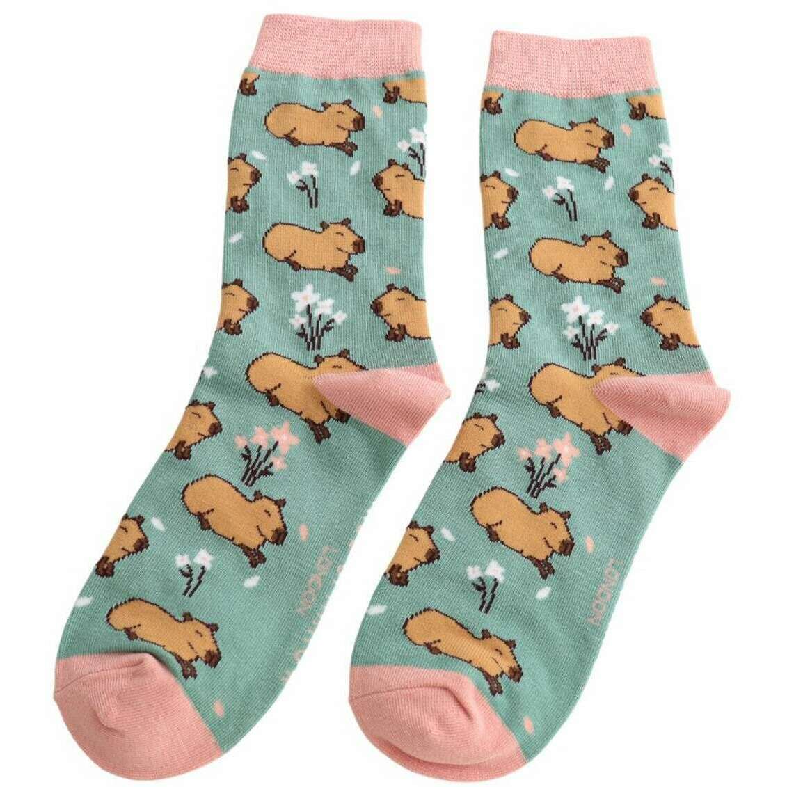 Miss Sparrow London Chaussettes mignonnes en bambou Capybara - Vert