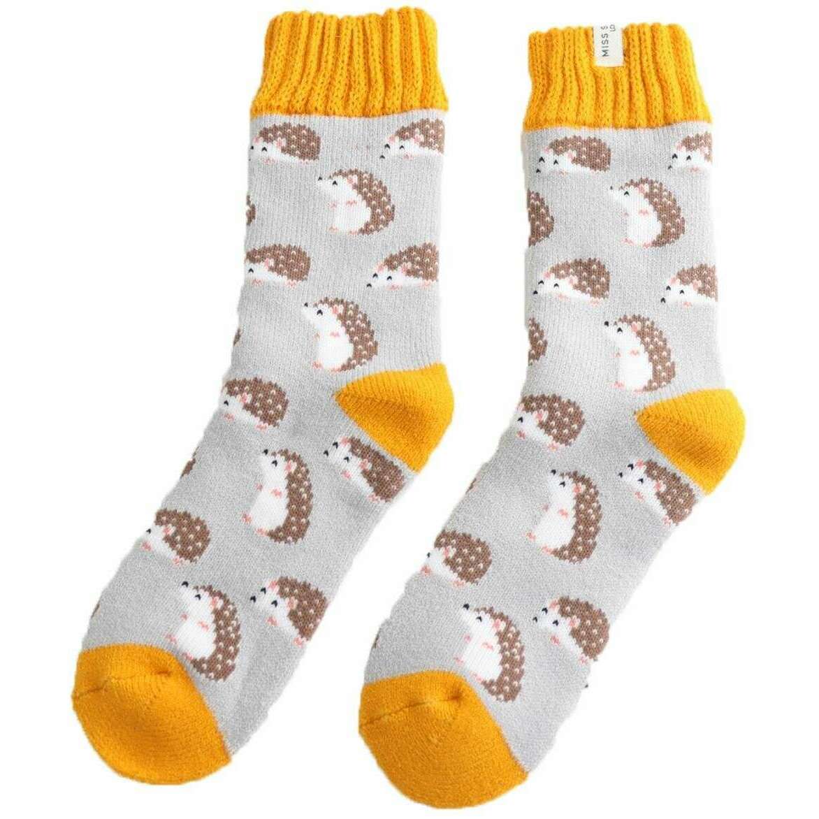 Miss Sparrow London Chaussettes d'hiver mignonnes hérissons - Gris argenté