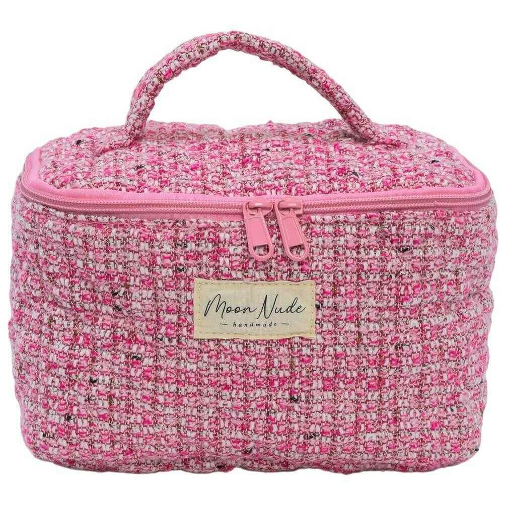 Utilisant du coton rose à 100 %, ce vanity camélia de Moon Nude est parfait pour les femmes et un incontournable. Il mesure 16 cm (hauteur) x 22 cm (largeur) x 14 cm (profondeur). Il est recommandé de laver à la main à l'eau froide avec un détergent doux, ou de laver à l'envers sur un cycle délicat. pour conserver ce sac en bon état. Tous les sacs sont livrés avec un emballage Moon Nude. Le Vanity Bag Moon Nude Camellia - Rose/Blanc est une nécessité absolue pour les voyages ou pour un usage quotidien. Ce sac de vanité est garanti pour garder tout votre maquillage ou vos soins de la peau au même endroit, tout en étant élégant et à la mode avec son design matelassé fait à la main.
