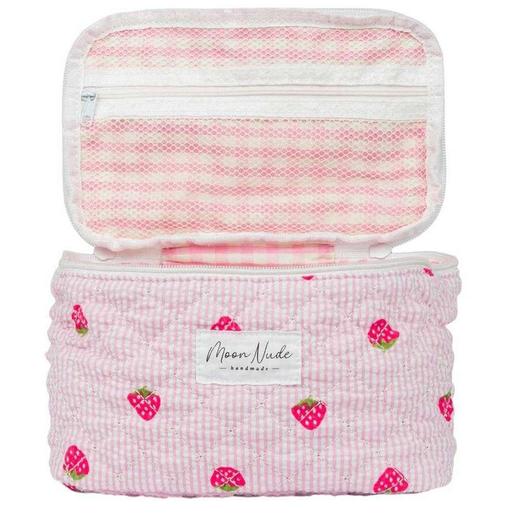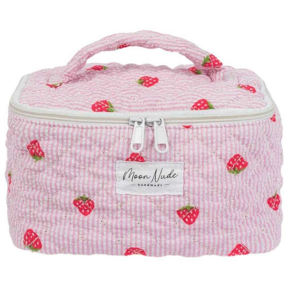 La créatrice Moon Nude vous propose ce sac pour femme 100% coton dans les tons rose/rouge/vert. Il mesure 16 cm (hauteur) x 22 cm (largeur) x 14 cm (profondeur). Il est recommandé de laver à la main à l'eau froide avec un détergent doux, ou de laver à l'envers sur un cycle délicat. pour conserver ce sac en bon état. Tous les sacs sont livrés avec un emballage Moon Nude. Le Vanity Bag Moon Nude Strawberry - Rose/Rouge/Vert est une nécessité absolue pour les voyages ou pour un usage quotidien. Ce sac de vanité est garanti pour garder tout votre maquillage ou vos soins de la peau au même endroit, tout en étant élégant et à la mode avec son design matelassé fait à la main.
