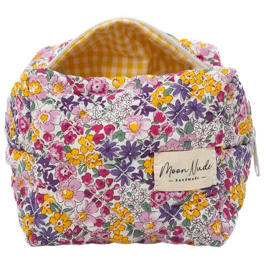 Cette mini trousse de maquillage d'été pour femmes de Moon Nude est de couleur violet/jaune/rose et est fabriquée à 100 % en coton. Il mesure 13 cm (hauteur) x 15 cm (largeur) x 11 cm (profondeur). Il est recommandé de laver à la main à l'eau froide avec un détergent doux, ou de laver à l'envers sur un cycle délicat. pour conserver ce sac en bon état. Tous les sacs sont livrés avec un emballage Moon Nude. La mini trousse de maquillage Moon Nude Summer - Violet/Jaune/Rose est une nécessité absolue pour votre chambre ou votre sac de tous les jours. Cette trousse de maquillage est garantie de garder tous vos produits les plus utilisés ensemble et en sécurité, tout en étant élégante et chic avec son design matelassé fait à la main.