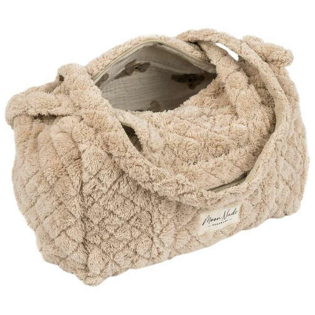 Ce mini sac polochon en peluche beige Moon Nude est parfait pour les femmes, il est également fabriqué à 100 % en coton. Il mesure 18 cm (hauteur) x 31 cm (largeur) x 18 cm (profondeur). Il est recommandé de laver à la main à l'eau froide avec un détergent doux, ou de laver à l'envers sur un cycle délicat. pour conserver ce sac en bon état. Tous les sacs sont livrés avec un emballage Moon Nude. Le mini sac de sport Moon Nude Teddy - Beige présente un magnifique design matelassé fait à la main. Ce sac comporte une poche extérieure zippée, un intérieur spacieux et deux grandes poignées, parfait pour un sac de sortie décontracté ou comme cadeau.