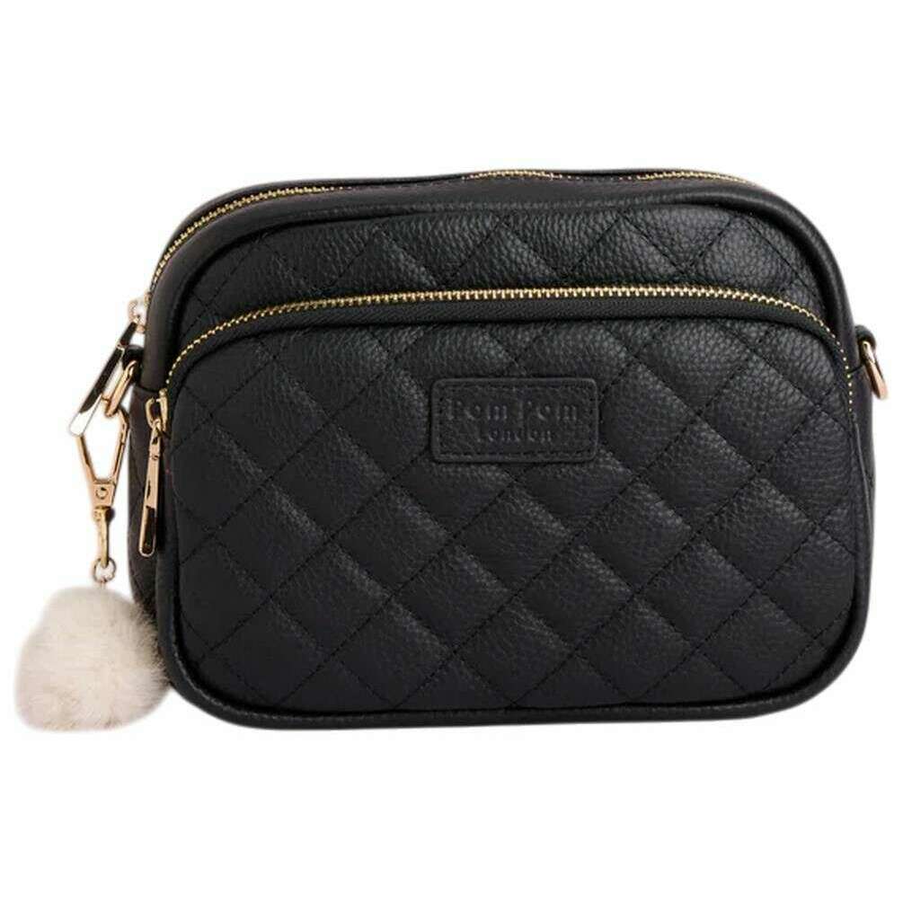 Sac à bandoulière matelassé original Pom Pom London - Noir