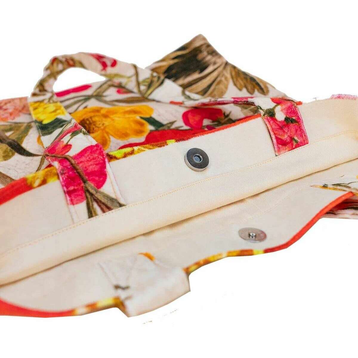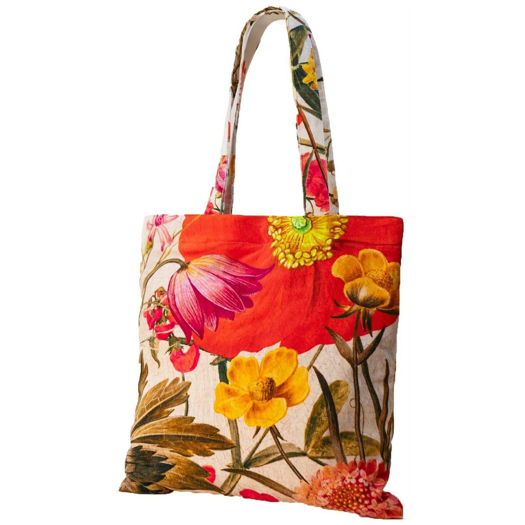 Cabas en Velours Powder Fine Flowers - Rose/Jaune/Rouge