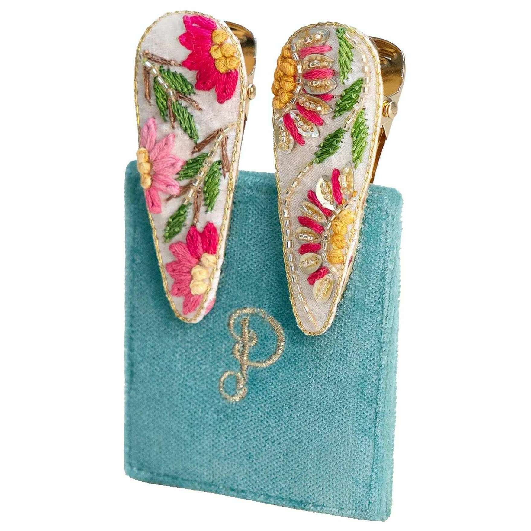 Pinces à cheveux Powder Flora - Blanc/Rose/Vert/Bleu