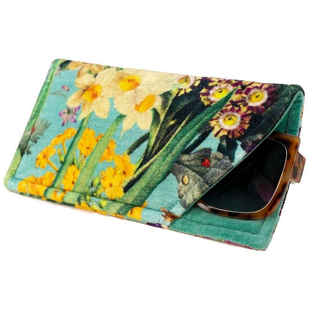 Pochette pour lunettes de soleil en velours Powder Spring Flora - Bleu/Beige/Vert