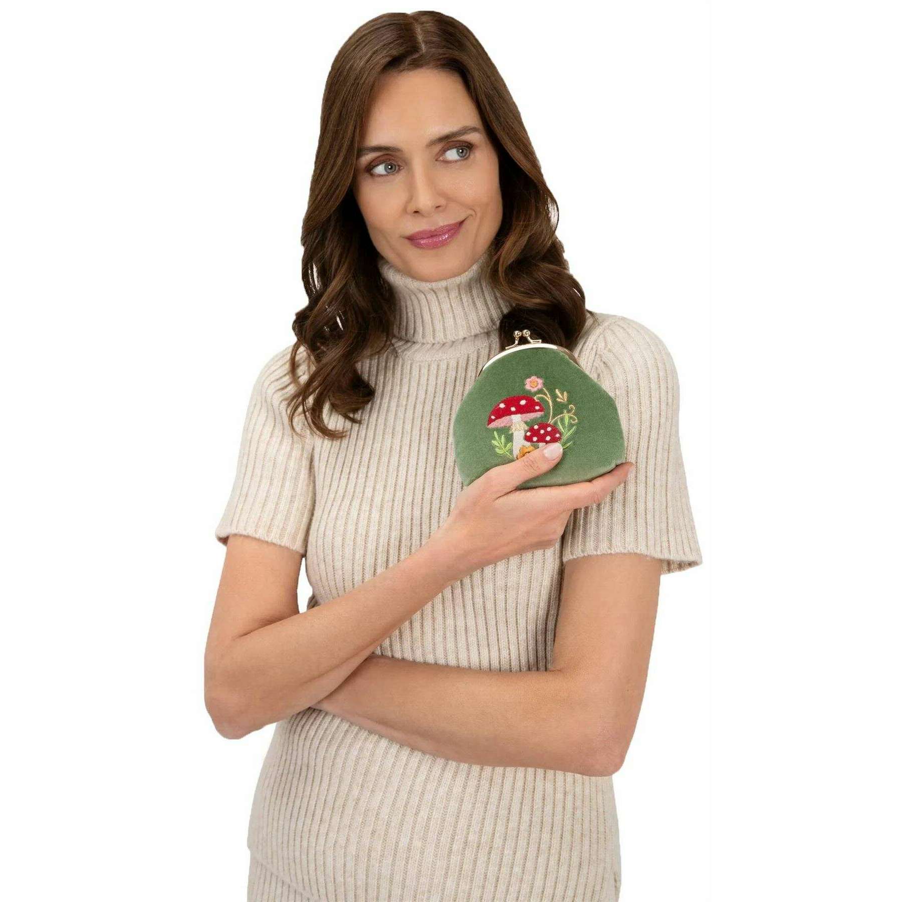 Poudre Toadstools Velvet Coin Purse - Sage vert