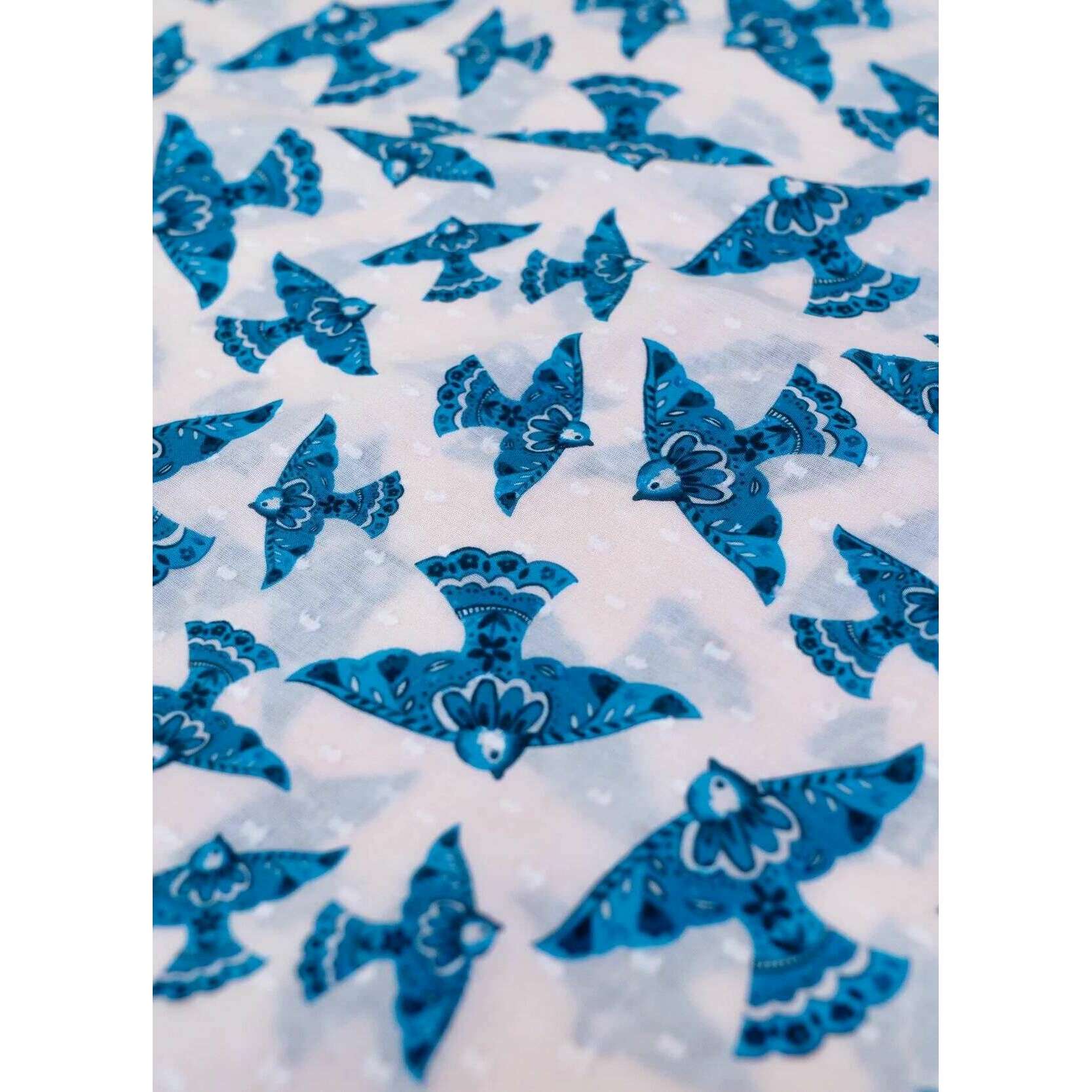 Écharpe Infini Oiseaux Aquarelle Poudre - Bleu/Beige