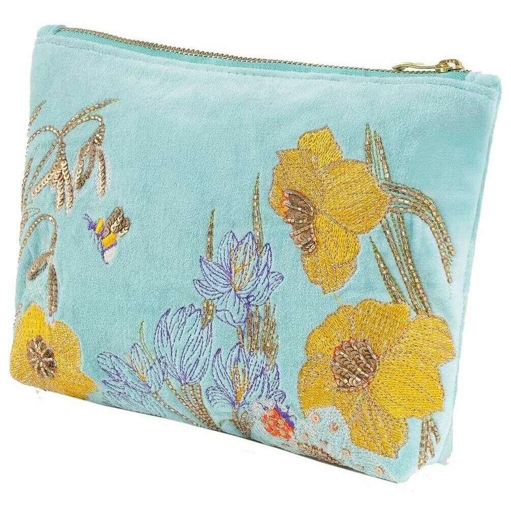 Pochette zippée brodée Powder Wildflower Meadow de taille moyenne - Jaune/Bleu/Beige