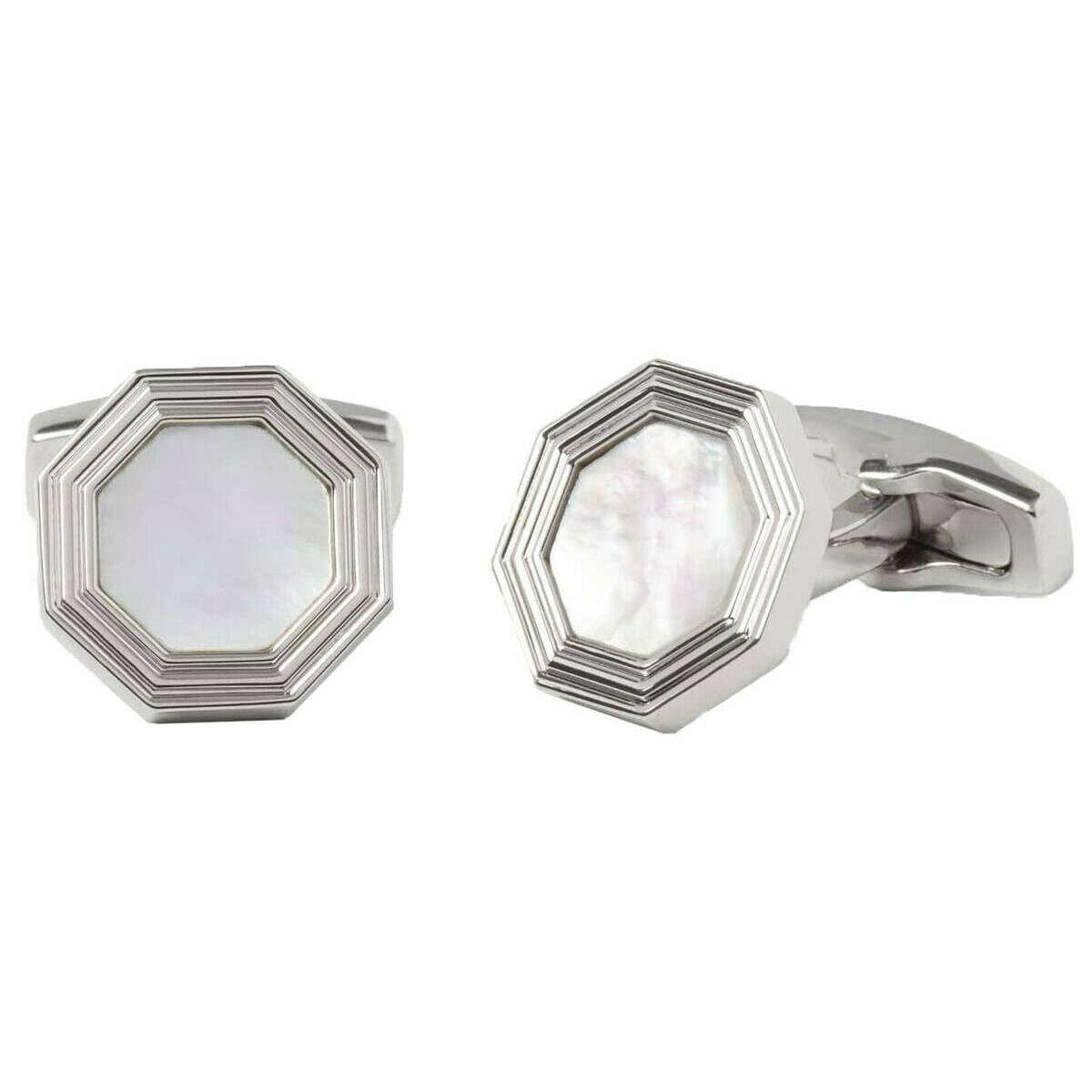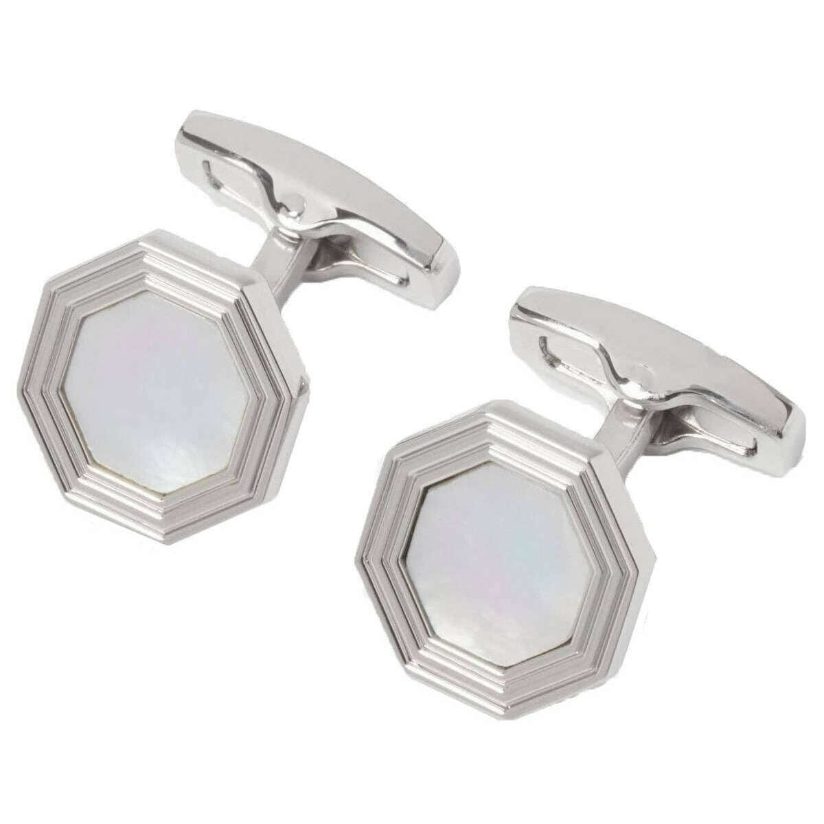 Le designer Simon Carter vous propose ces boutons de manchette pour hommes en métal rhodié et en nacre dans des tons blanc/argent. Tous les boutons de manchette sont livrés dans un emballage Simon Carter. Les boutons de manchette en nacre Monty de Simon Carter - Blanc/Argent présentent un cadre octogonal avec une pierre de nacre. Cet ensemble de boutons de manchette est la touche finale parfaite pour toute occasion formelle et constitue un excellent cadeau pour tous les messieurs !