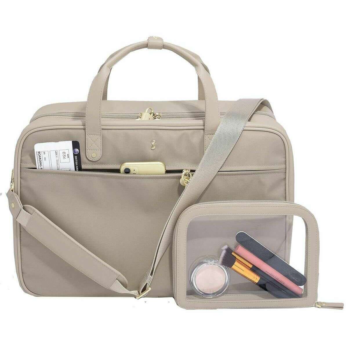 Utilisant du similicuir beige et du velours, ce sac cabine de Stackers est parfait pour les femmes et un incontournable. Il mesure 33,5 cm (hauteur) x 22,5 cm (largeur) x 46 cm (profondeur). Tous les sacs sont livrés avec un emballage stacker. Le sac cabine Stackers - Clay Beige est parfait pour une utilisation en déplacement. Ce sac cabine beige comprend une poche pour ordinateur portable, deux grands compartiments zippés et une gamme de petites poches. Complet avec des bretelles, des bretelles de sac à dos et une fermeture éclair pour plus de sécurité.