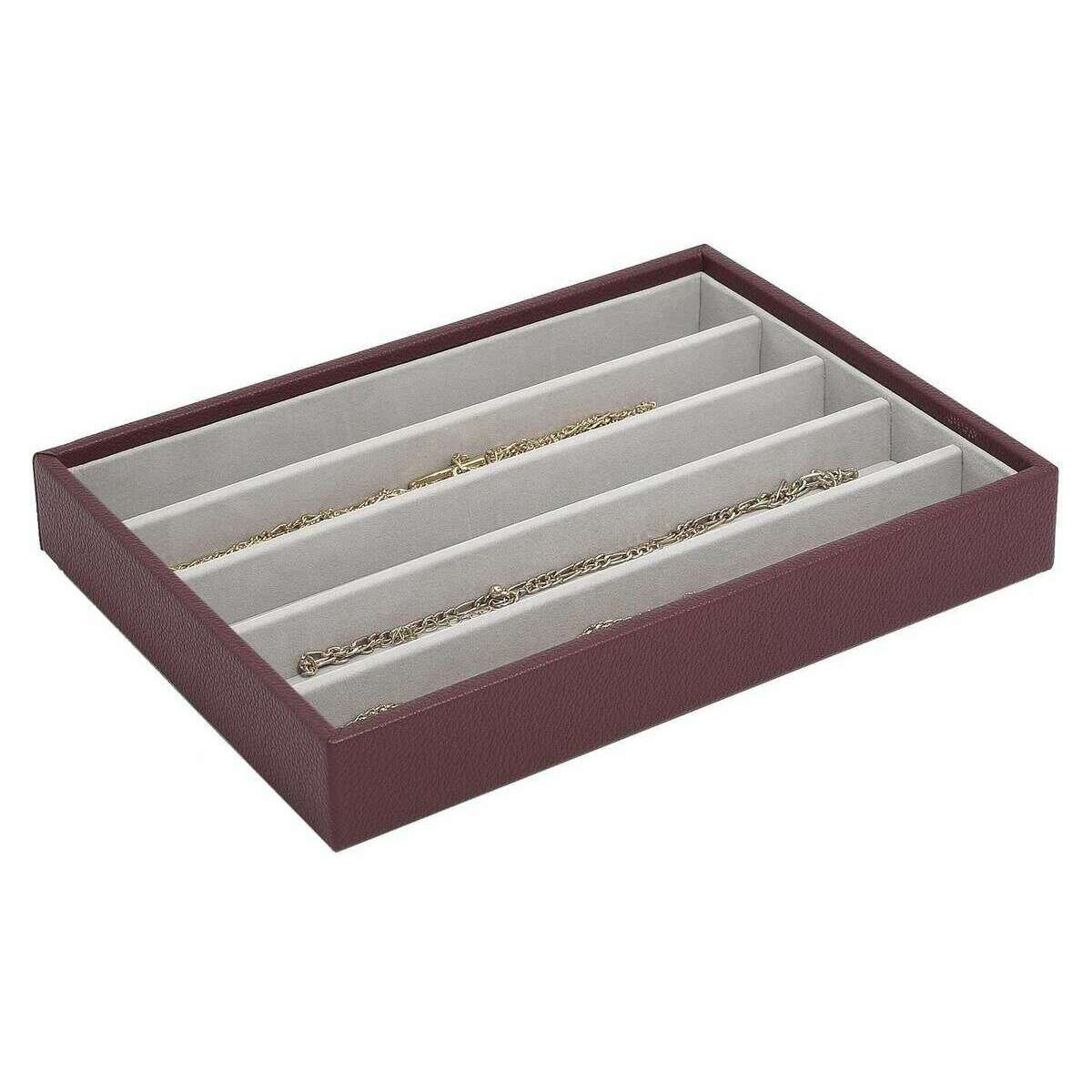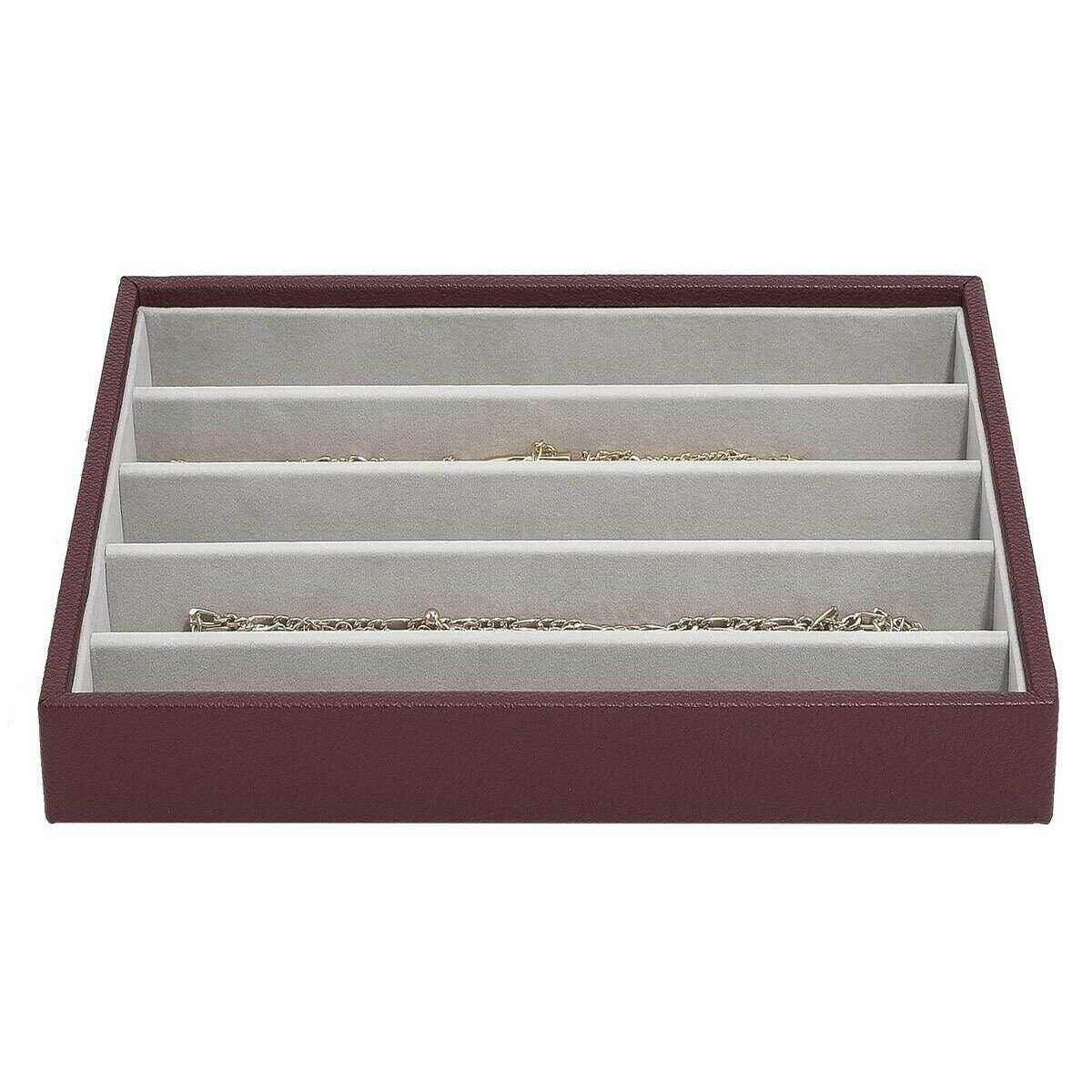 Ce collier classique pour femme bien fait de Stackers est de couleur bordeaux et est fabriqué à partir de faux cuir et de velours. Il mesure 3,7 cm (hauteur) x 25 cm (largeur) x 18 cm (profondeur). Toutes les boîtes à bijoux sont livrées avec un emballage stacker. Le Stackers Classic Necklace Layer - Burgundy comporte plusieurs sections pour tous vos colliers. Cette magnifique couche de bijoux bordeaux classique est parfaite pour rester organisée car elle comporte cinq sections.