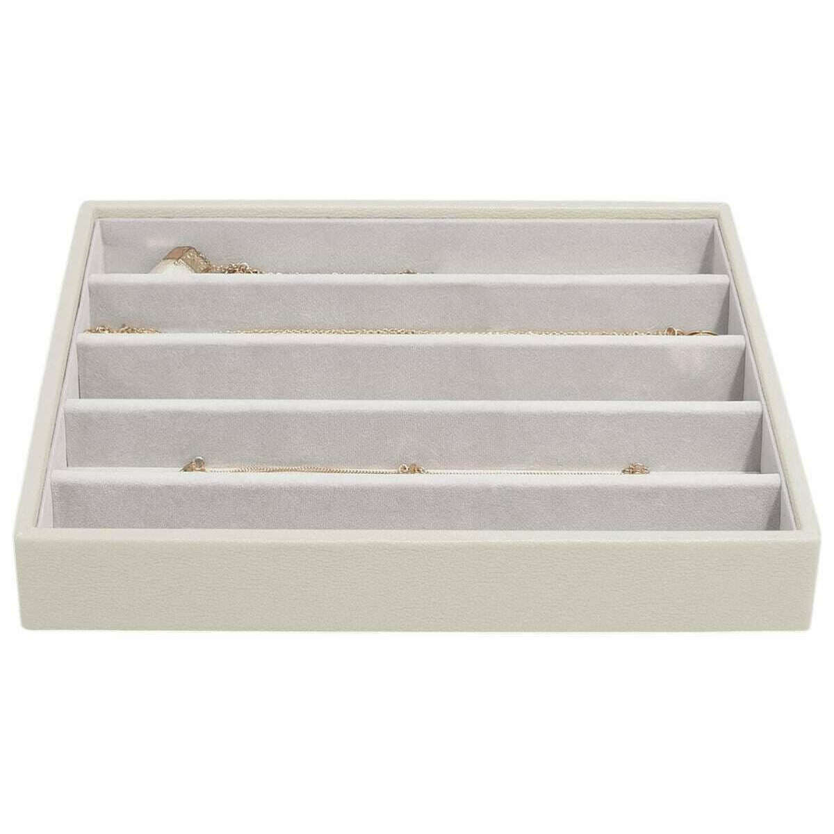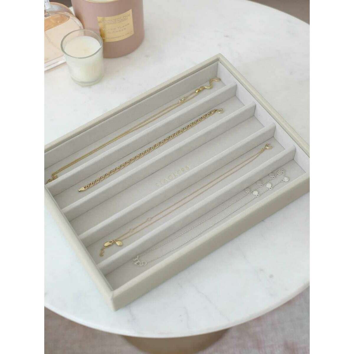 Ce collier classique pour femme est confectionné par la marque Stackers dans une couleur crème et est fabriqué en simili cuir et velours. Il mesure 3,7 cm (hauteur) x 25 cm (largeur) x 18 cm (profondeur). Il est recommandé de l'essuyer pour conserver cette boîte à bijoux en bon état. Toutes les boîtes à bijoux sont livrées avec un emballage stacker. Le Stackers Classic Necklace Layer - Oatmeal comporte cinq longues sections qui constituent une couche parfaite pour ranger les colliers, les bracelets et les pendentifs. Les sections sont également compatibles avec les longues barres de charme. Doublé d'un beau velours pour garder vos bijoux en parfait état, il peut être utilisé seul sur votre commode ou associé à d'autres pièces pour construire une boîte à bijoux plus grande.
