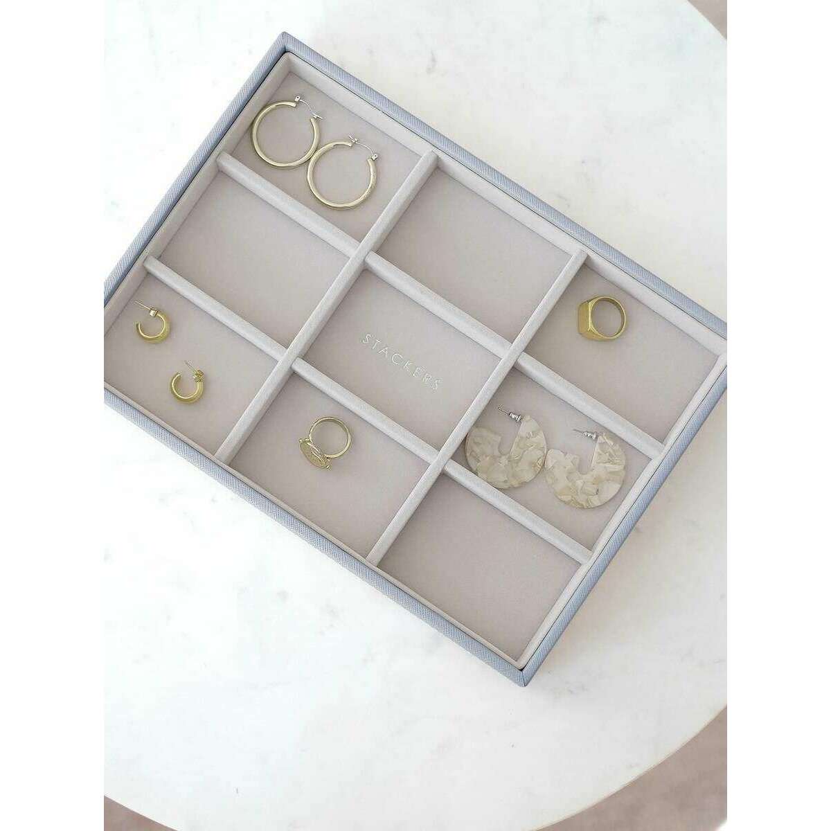 Le designer Stackers vous propose cette boîte à bijoux pour femme en simili cuir et velours dans des tons bleu foncé. Il mesure 3,7 cm (hauteur) x 25 cm (largeur) x 18 cm (profondeur). Il est recommandé de l'essuyer pour conserver cette boîte à bijoux en bon état. Toutes les boîtes à bijoux sont livrées avec un emballage stacker. Le Stackers Classic Statement Layer - Dusky Blue a été intelligemment créé et conçu pour contenir parfaitement toutes vos boucles d'oreilles, bagues ou pinces à cheveux. Il peut être ajouté à n'importe quel autre plateau à bijoux classique pour créer une boîte à bijoux ou il peut être utilisé seul. Vous n'aurez pas à faire de compromis sur l'organisation.