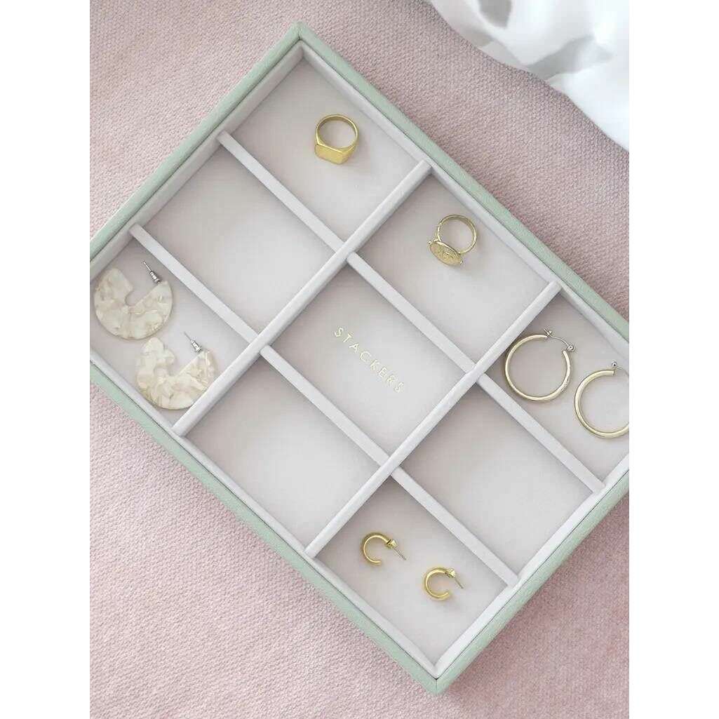 Présentation de cette couche classique pour femme de Stackers, elle est fabriquée à partir de simili cuir et de velours dans une couleur vert sauge. Il mesure 3,7 cm (hauteur) x 25 cm (largeur) x 18 cm (profondeur). Il est recommandé de l'essuyer pour conserver cette boîte à bijoux en bon état. Toutes les boîtes à bijoux sont livrées avec un emballage stacker. Le Stackers Classic Statement Layer - Sage Green a été intelligemment créé et conçu pour contenir parfaitement toutes vos boucles d'oreilles, bagues ou pinces à cheveux. Il peut être ajouté à n'importe quel autre plateau à bijoux classique pour créer une boîte à bijoux ou il peut être utilisé seul. Vous n'aurez pas à faire de compromis sur l'organisation.