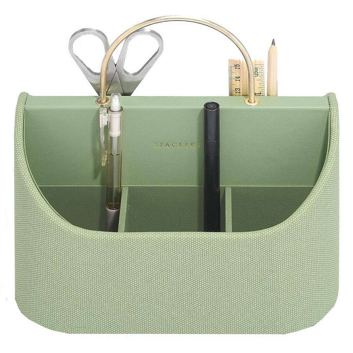 Fabriqué en simili cuir, ce support de bureau pour femme vert pistache du designer Stackers. Il mesure 21 cm (hauteur) x 21 cm (largeur) x 13 cm (profondeur). Tous les accessoires de bureau sont livrés avec un emballage empileur. Le support de bureau Stackers - Vert pistache est un incontournable pour n'importe quel bureau ! Ce support de bureau vert est parfait pour ranger des articles de papeterie et possède même une poignée qui le rend facilement portable.