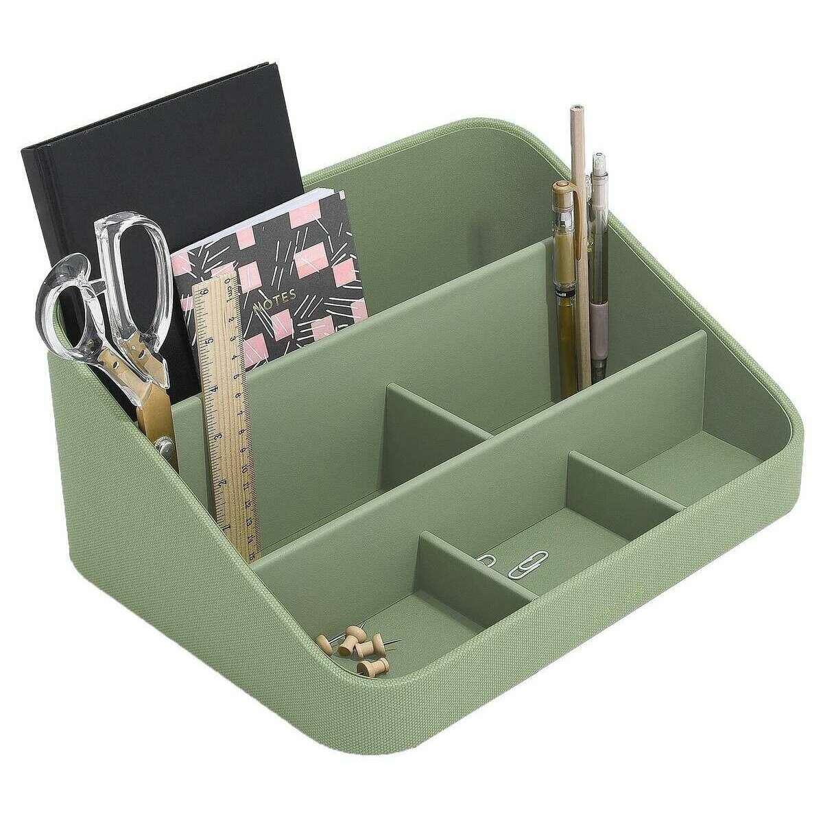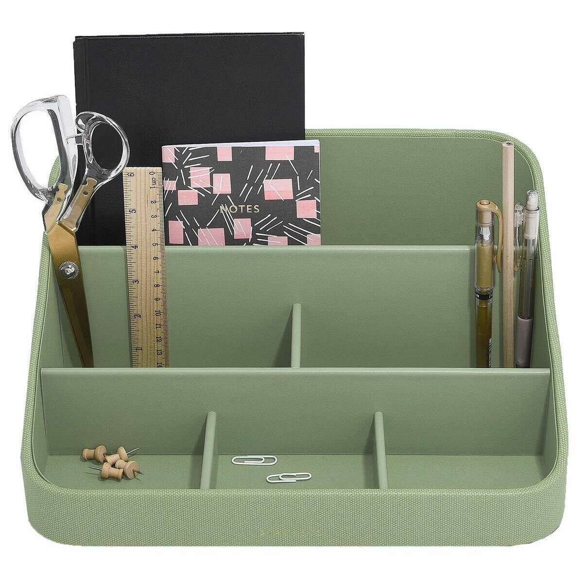 Le designer Stackers vous propose cet accessoire de bureau en simili cuir pour femme dans des tons vert pistache. Il mesure 14,5 cm (hauteur) x 24,5 cm (largeur) x 32,5 cm (profondeur). Tous les accessoires de bureau sont livrés avec un emballage empileur. L'organiseur de bureau Stackers - Vert pistache présente un magnifique design vert. Cet organiseur de bureau comporte de nombreuses sections pour les articles de papeterie, les cahiers et bien d'autres bibelots, le tout à portée de main !