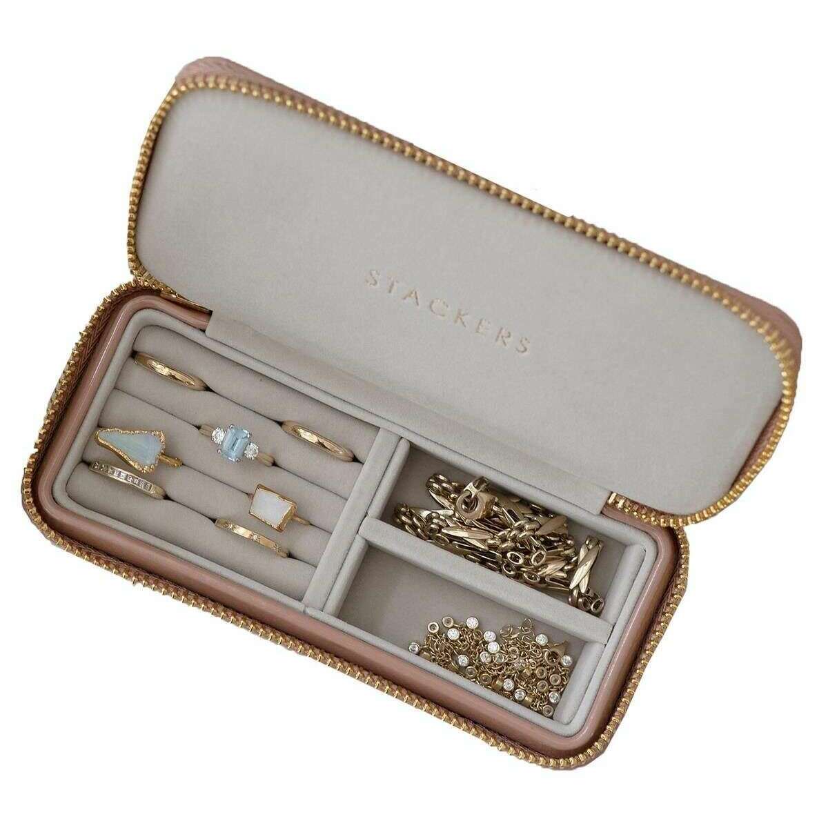 Boîte à Bijoux de Voyage Zippée Stackers - Rose Verni