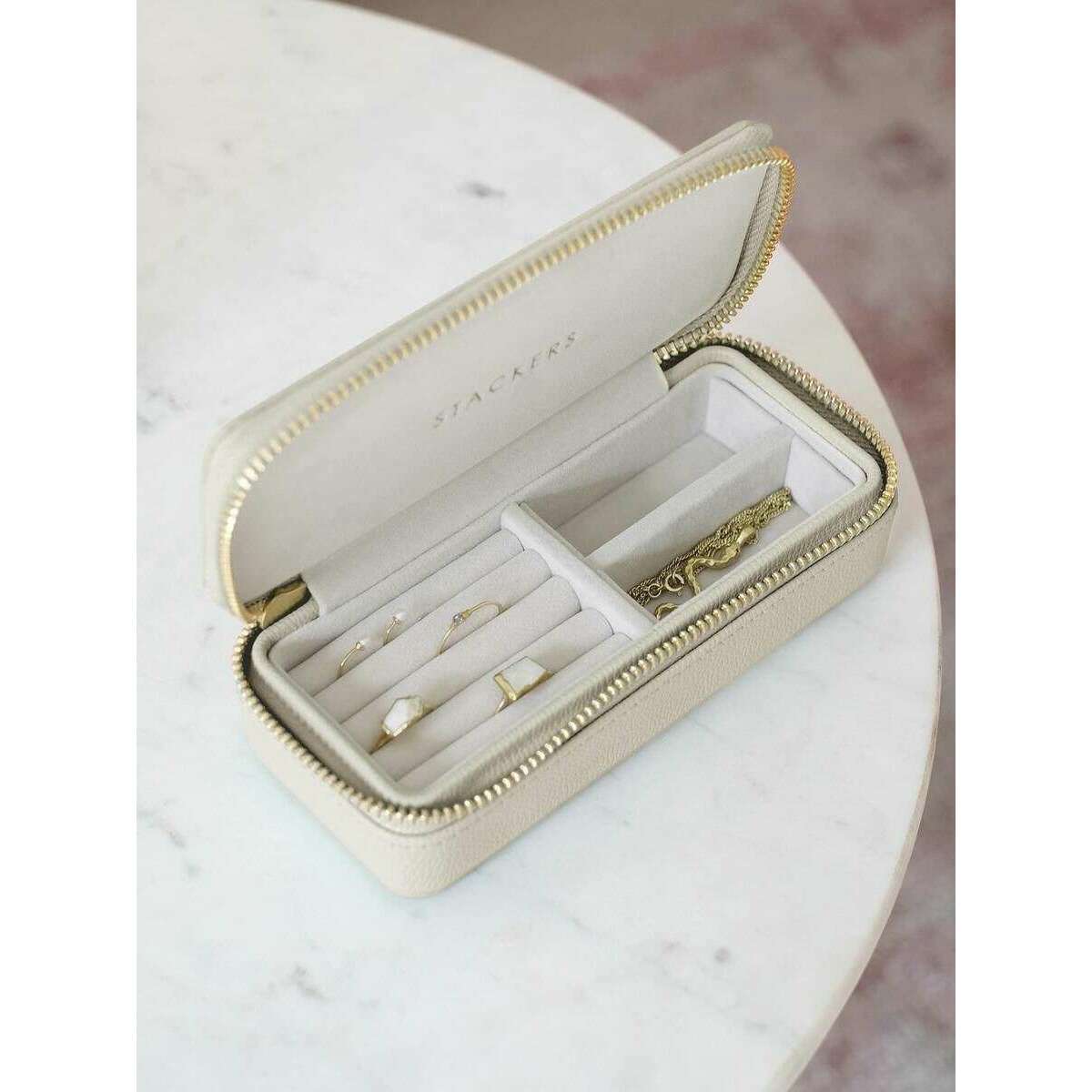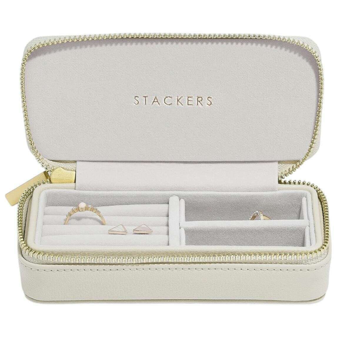 Boîte à bijoux de voyage zippée Stackers de taille moyenne - Crème d'avoine