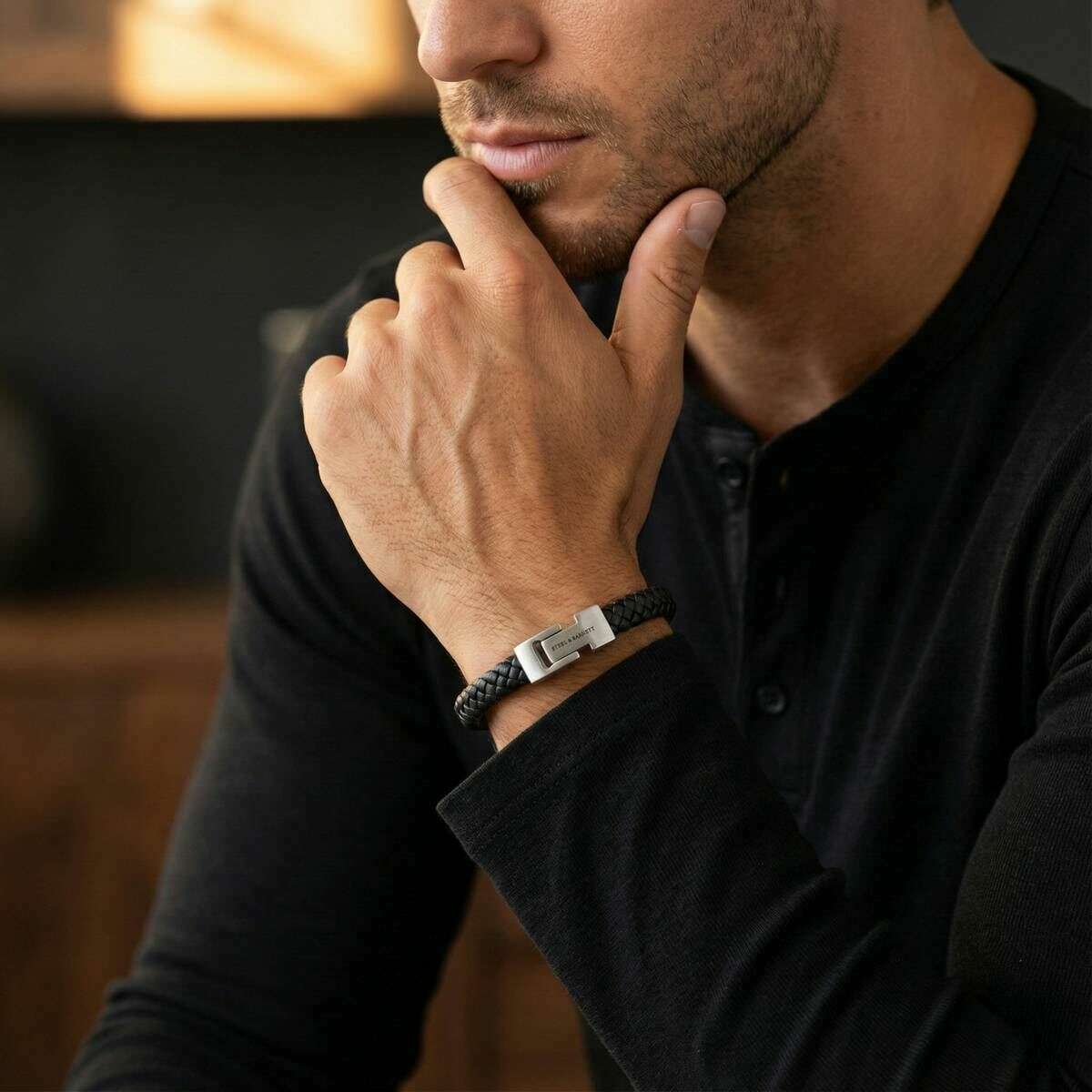Ce bracelet en cuir tressé Archie pour homme de la marque Steel & Barnett est composé à 100 % de cuir nappa et d'acier inoxydable et est présenté en noir. Tous les bracelets sont livrés avec un emballage en acier et Barnett. Le bracelet en cuir tressé Steel & Barnett Archie - Noir incarne l'équilibre parfait entre simplicité et élégance. Fabriqué à la main à partir de cuir Nappa véritable, son bracelet lisse de 8 mm offre une esthétique épurée et minimaliste adaptée à tous les styles. Le design est rehaussé par un fermoir en argent brossé signature, finement gravé du logo STEEL & BARNETT, offrant une subtile touche de distinction. Conçu pour la longévité, le bracelet est doté d'un fermoir en acier inoxydable 316L de haute qualité, célèbre pour sa durabilité et sa résistance à la corrosion. Sa fermeture magnétique garantit un port sans effort, offrant un ajustement sûr et confortable tout au long de la journée. Polyvalent et raffiné, l'Archie passe facilement des occasions formelles aux décors décontractés, ajoutant une couche de sophistication discrète à chaque tenue.