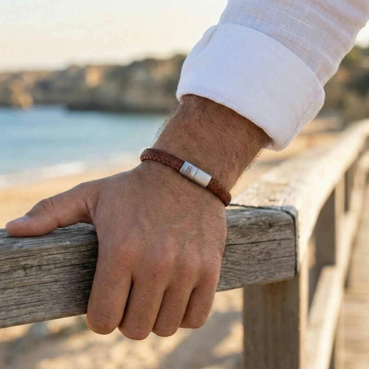 Présentation de ce bracelet en cuir tressé élégant Riley pour hommes de Steel & Barnett, il est fabriqué à partir de cuir de vachette 100 % et d'acier inoxydable dans une couleur marron caramel. Tous les bracelets sont livrés avec un emballage en acier et Barnett. Le bracelet en cuir tressé élégant Steel & Barnett Riley - Marron caramel est conçu pour incarner à la fois la solidité et la fiabilité, offrant un accessoire raffiné adapté à n'importe quelle collection. Fabriqué à partir de cuir de vachette véritable à 100 %, son profil mince de 6 mm présente un design élégamment tressé qui offre une sophistication subtile sans sacrifier la durabilité. Un fermoir en acier brossé, conçu en acier inoxydable 316L, offre une résistance exceptionnelle contre l'usure et la corrosion, tandis que sa fermeture magnétique assure un ajustement sûr et confortable autour du poignet. Conçu avec soin et élégant sans effort, ce bracelet est un choix idéal pour tous ceux qui recherchent un accessoire en cuir à la fois minimaliste et distingué qui rehausse la tenue de tous les jours avec une élégance discrète.