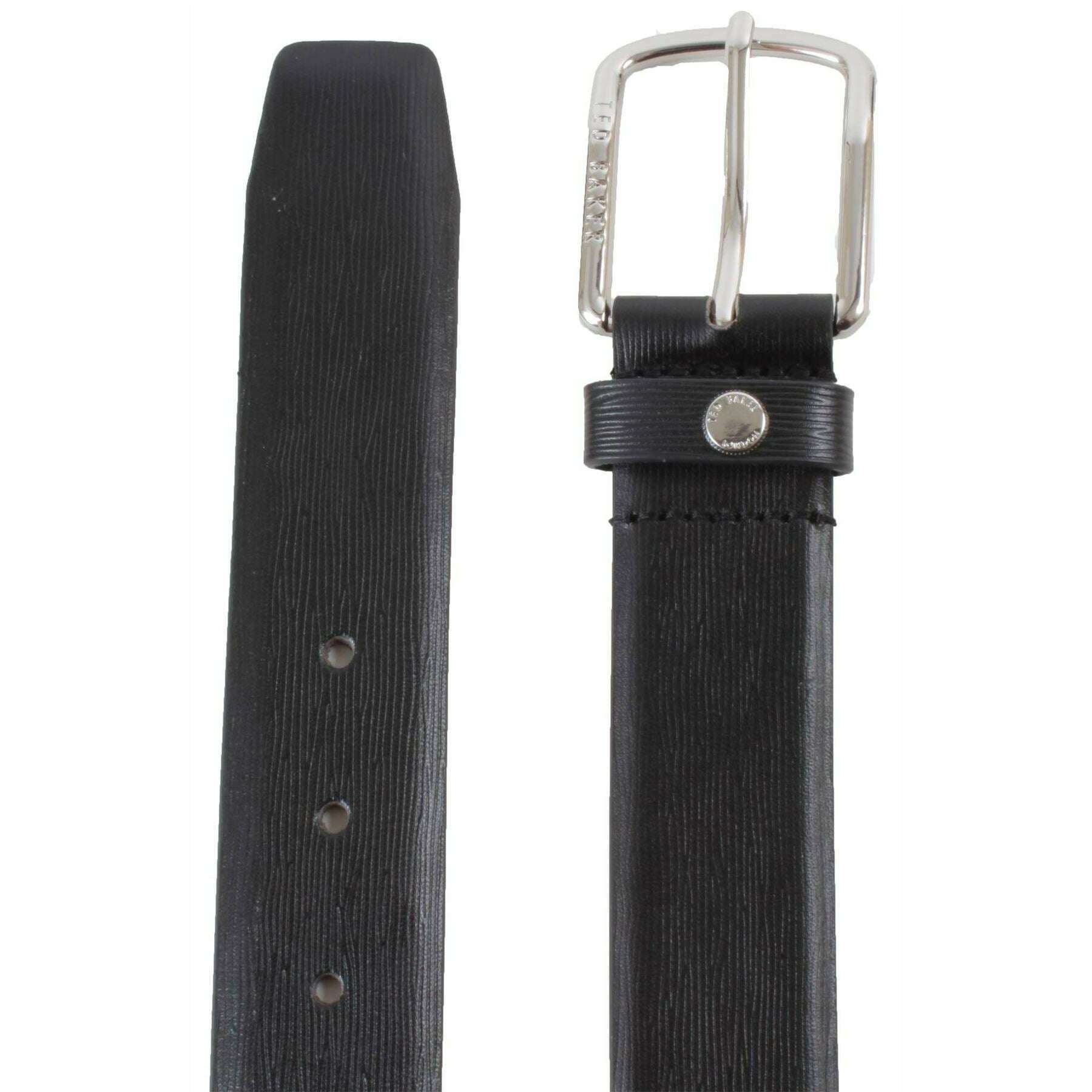 Cette ceinture en cuir de texture d'écorce Baiden pour hommes est façonnée par la marque Ted Baker de couleur noire et est fabriquée à partir de cuir à revêtement 100% bovine. Toutes les ceintures sont complètes avec un emballage Ted Baker. La ceinture en cuir de la texture d'écorce de Baker Ted Baker - Black conviendra à un look décontracté ou formel car il dispose d'une finition très simple mais élégante avec une marque à l'extrémité de la boucle de la ceinture. Le design de l'écorce complète parfaitement le cuir fini brillant, ce qui en fait un essentiel à votre tenue pour toute occasion. Le matériel de ton argenté complète ce look donnant une touche luxueuse.