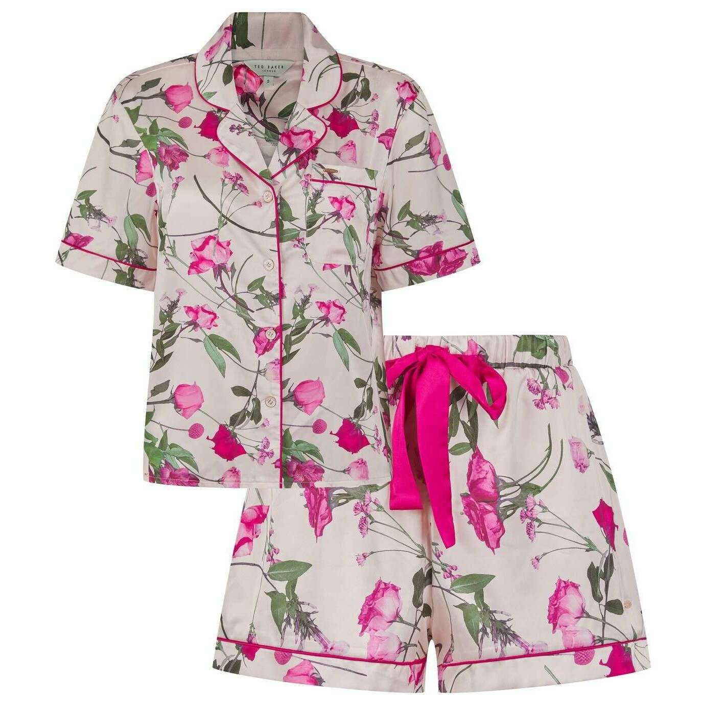 Pyjama court en satin Ted Baker Penny - Rose clair imprimé numérique