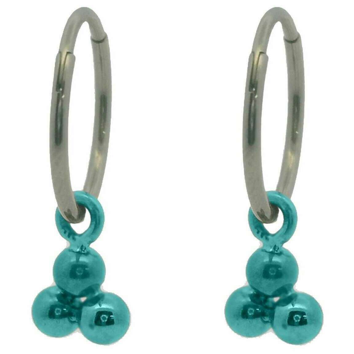 Ti2 Titanium Triple Bead Charm Boucles d'oreilles - Kingfisher Blue