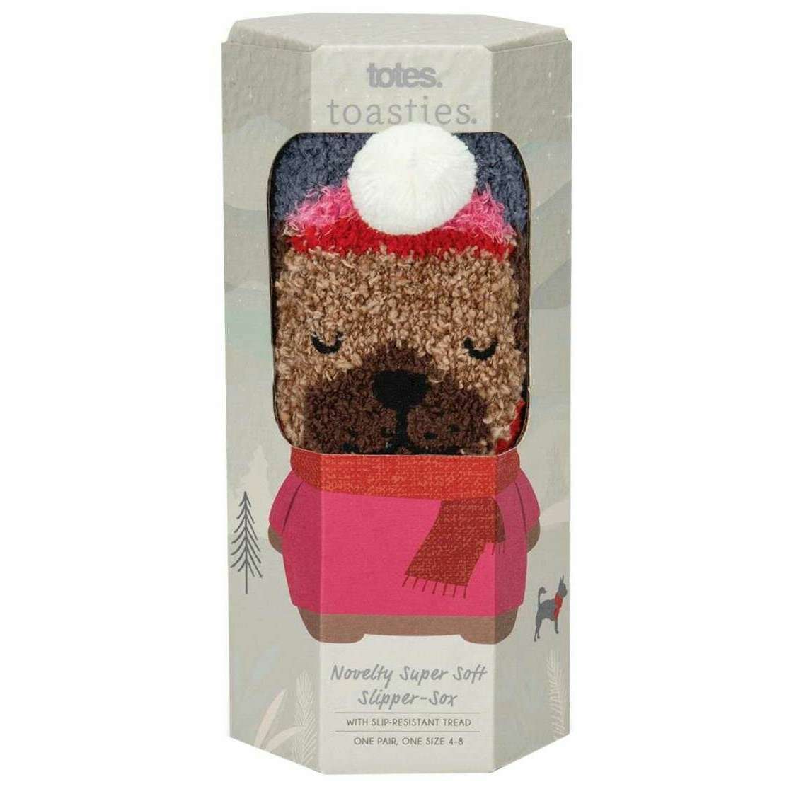 Totes toasties nouveauté des chaussettes de pantoufles super douces - chien violet