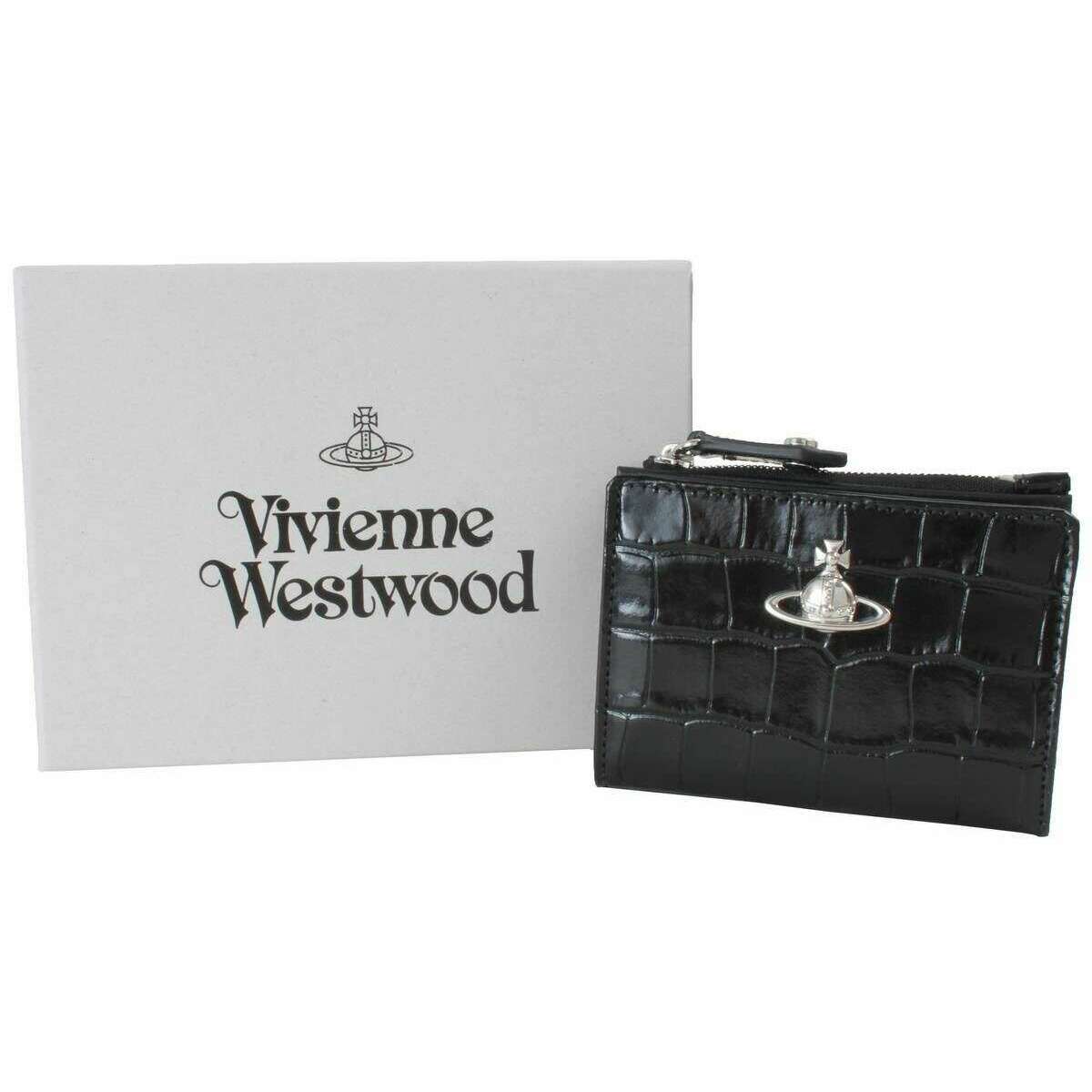 Vivienne Westwood Porte-cartes à rabat fin en relief effet croco - Noir