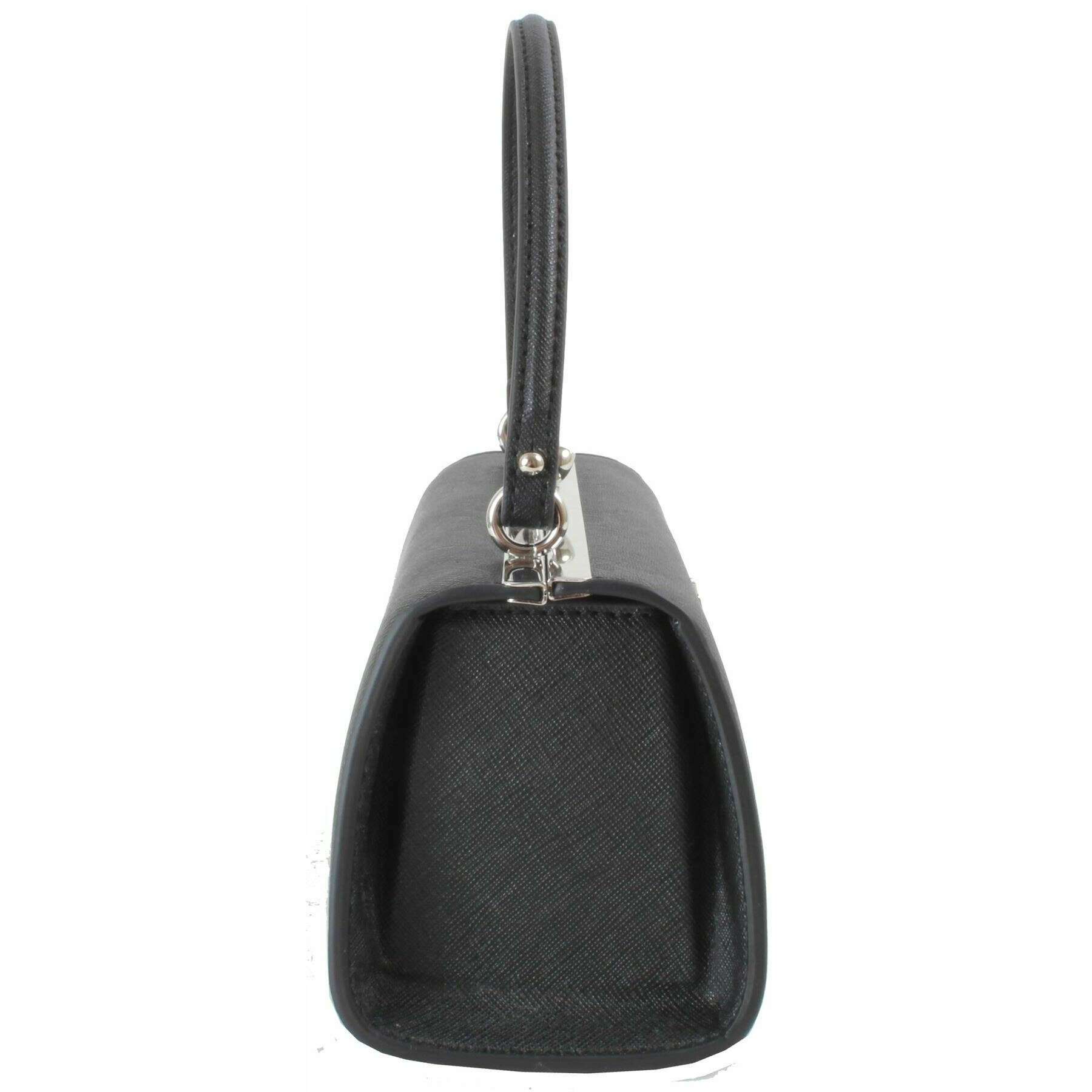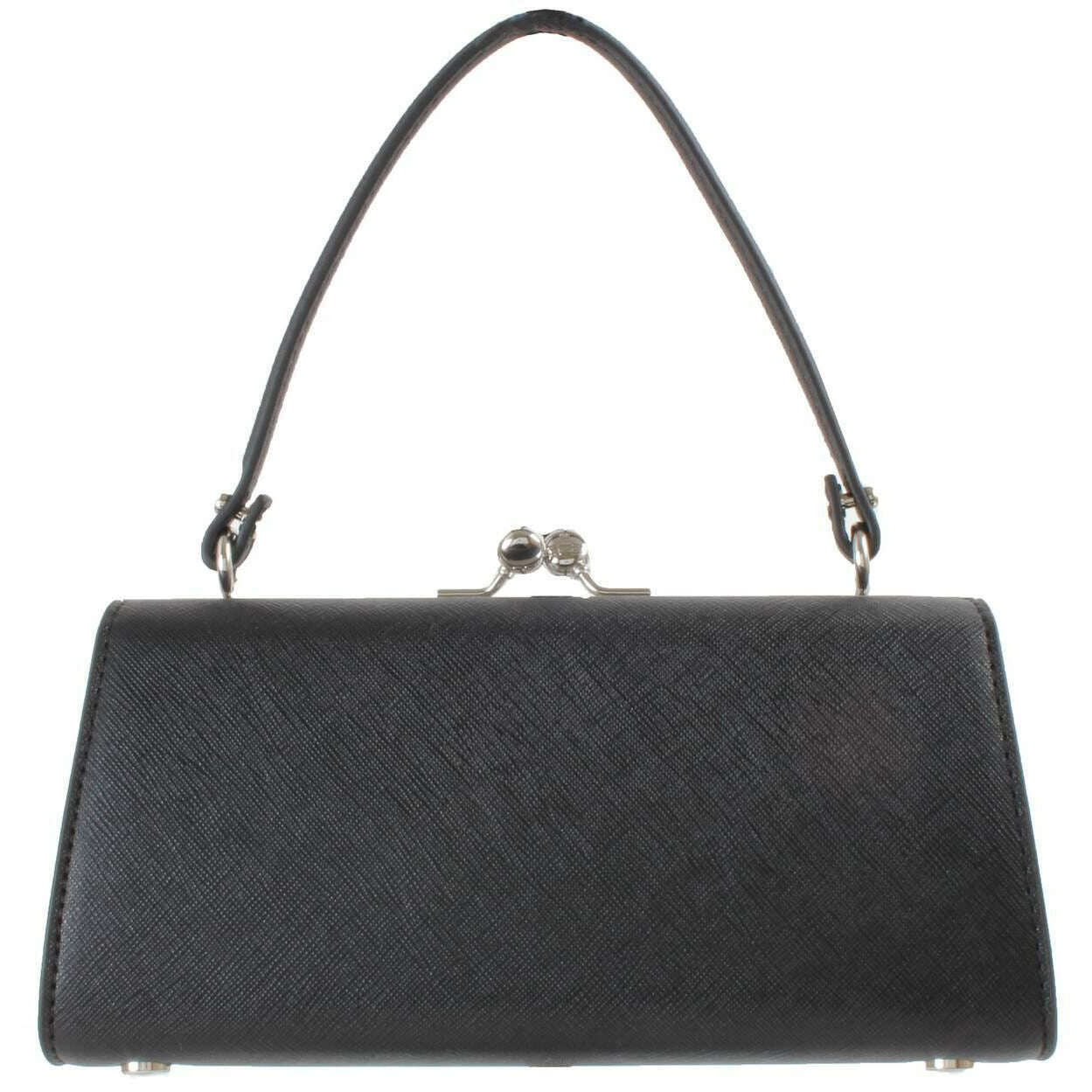 • Front de motif d'orbe, pieds de base, fermeture de fermoir à baiser, poignée de transport supérieure, intérieur doublé, panel intérieur en relief, sangle à bandoulière réglable détachable