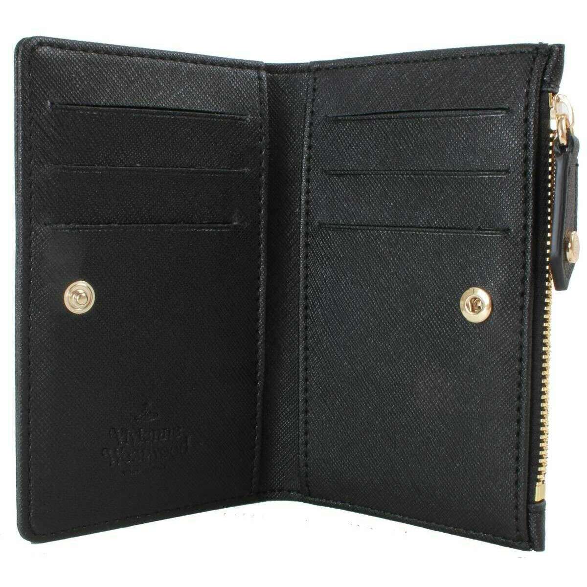 Ce support de cartes à volet Saffiano Slim pour femmes par la marque Vivienne Westwood est fabriqué à 54% de polyuréthane, à 30% de Polycotton recyclé et 16% Polycotton et est présenté en noir. Il mesure 8 cm (hauteur) x 13 cm (largeur) x 1,5 cm (profondeur). Tous les sacs à main sont livrés avec la boîte de présentation de Vivienne Westwood. Le portefeuille de cartes à rabat Slim Vivienne Westwood Saffiano - Black est une pièce élégante que tout le monde a besoin pour stocker et transporter de l'argent avec la classe. Ce sac à main offre une conception féminine avec le motif orbe emblématique à l'avant, un compartiment de pièces à glissière supérieur et 4 emplacements de cartes. Sa fermeture de goujons de presse et sa conception zip-top garantissent que vos objets de valeur sont stockés en toute sécurité. Cette taille compacte garantit que vous pouvez transporter ce sac dans n'importe quel sac quelle que soit l'occasion.
