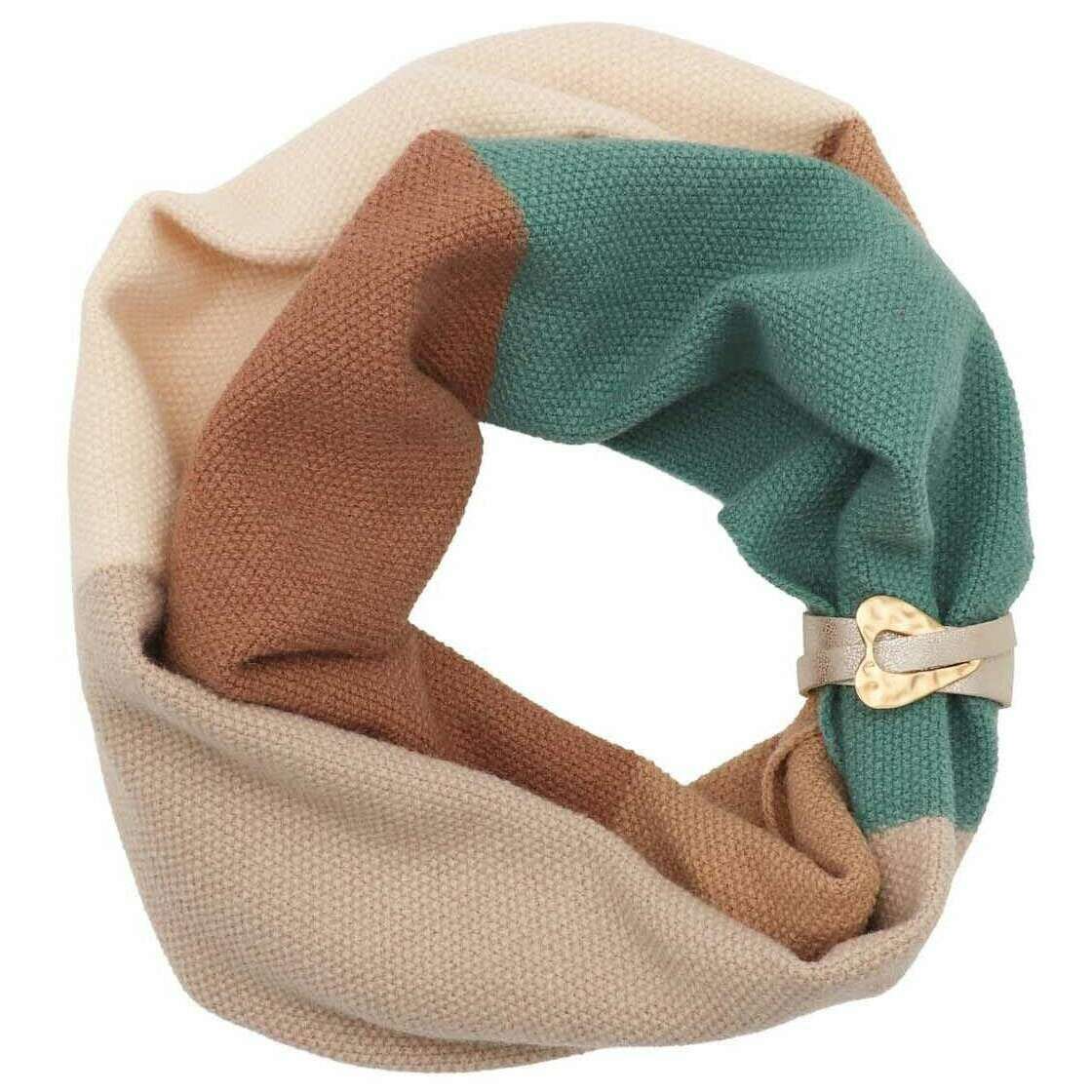 Snood à boucle en similicuir Zelly - Beige/Crème/Bleu Sarcelle