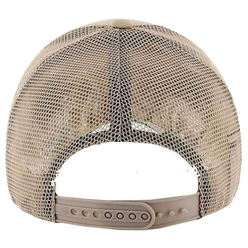 Using khaki 100% cotton and polyester, this new york yankees branson trucker snapback cap by 47 Brand is perfect for men and a must have. It is recommended to do not tumble dry and wash inside out to keep this hat in good condition. All the hats come complete with 47 brand tags. The 47 Brand New York Yankees Branson Trucker Snapback Cap - Khaki Brown practical and stylish will keep your outfits looking fashionable and trendy this summer. Featuring a curved visor, a mesh back to keep your head cool and an adjustable snap closure to allow the perfect fit for all head sizes keeping your head comfortable and protected from the sun. With a large New York Yankees logo on the front middle and a smaller 47 logo on the side this cap is ideal for you!