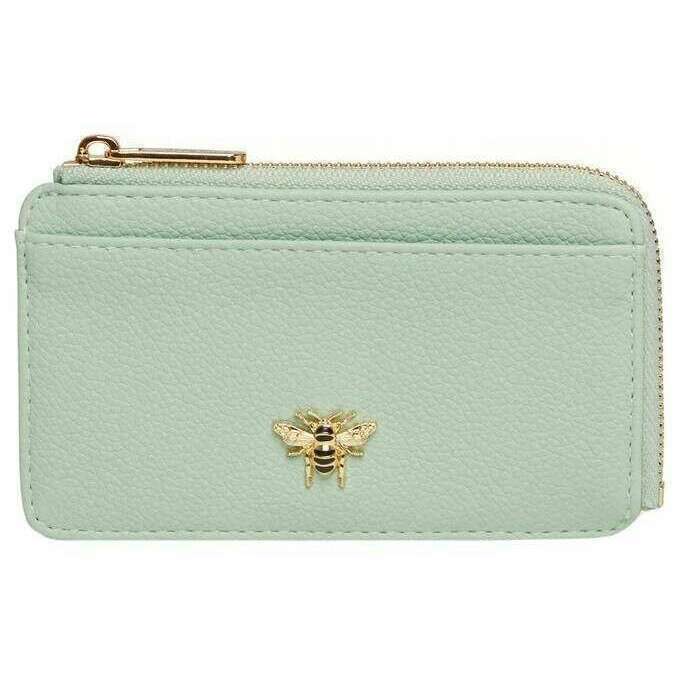 This women's bath coin card purse by the brand Alice Wheeler London is made from 100% vegan faux leather and is showcased in green. It measures 8cm(height) x 13cm(width) x 1cm(depth). All the purses come complete with alice wheeler packaging. The Alice Wheeler London Bath Coin Card Purse - Pastel Mint Green is handy and a great way to organise all of your money. This purse features a main zippered compartment to store notes and receipts, card slots to hold your most used cards and room for more cash. Finishing off this purse is the Alice Wheeler branding on the front. Made from high-quality vegan faux leather means that this purse is completely eco-friendly.