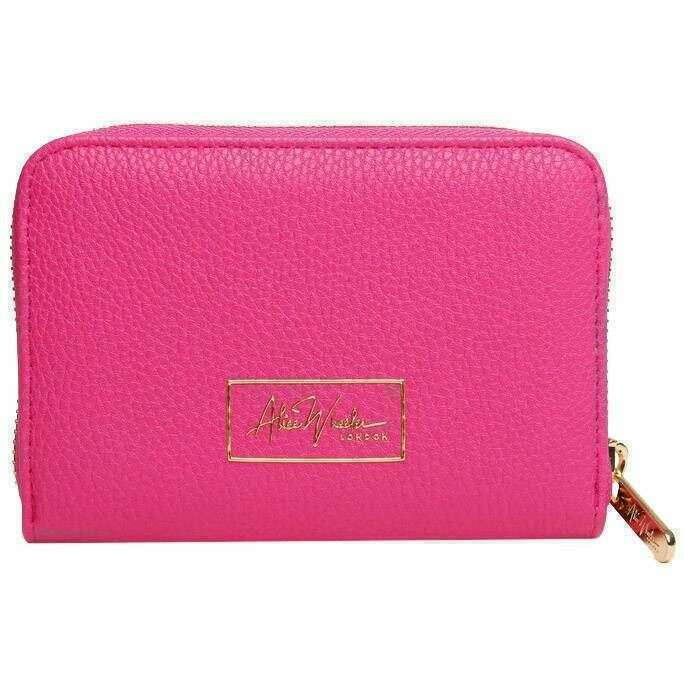 This well made women's bromley purse from Alice Wheeler London comes in a hot pink colour and is manufactured from 100% vegan faux leather. It measures 10cm(height) x 14cm(width) x 2cm(depth). It is recommended to wipe clean with damp cloth to keep this purse in good condition. All the purses come complete with alice wheeler london packaging. The Alice Wheeler London Bromley Purse - Hot Pink is handy and a great way to organise all of your money. This purse features two separate compartments to store notes or receipts, six card slots and a zipper pouch for coins. Finishing off this purse is the iconic bee logo and branding on the back. Made from high-quality vegan faux leather means that this purse is completely eco-friendly.