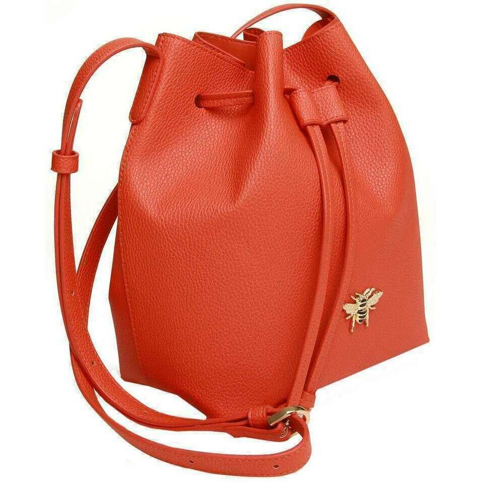 This well made women's bucket crossbody bag from Alice Wheeler London comes in a orange colour and is manufactured from 100% vegan faux leather. It measures 26cm(height) x 20cm(width) x 12.5cm(depth). All the bags come complete with alice wheeler packaging. The Alice Wheeler London Bucket Crossbody Bag - Orange crafted from high-quality vegan leather is a must-have if you are looking for a casual bag that is sleek and elegant that will keep you looking smart and sophisticated. Featuring a toggle closure to securely fasten the bag for security, a belt buckle designed adjustable shoulder strap for versatility and a spacious main compartment for optimal storage. These features make this the perfect everyday bag for your essentials. Complete with the signature honeybee logo adorned to the front.