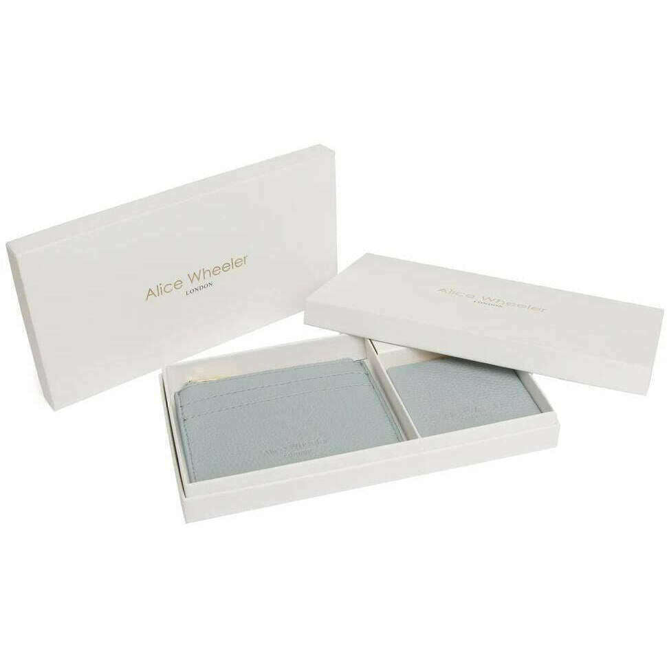 Manufactured from 100% vegan faux leather is this duck egg blue women's coin purse and mirror compact gift set by the designer Alice Wheeler London. It measures 9cm(height) x 11.5cm(width). All the purses come complete with alice wheeler packaging. The Alice Wheeler London Coin Purse and Mirror Compact Gift Set - Duck Egg Blue will make a stunning gift to yourself or someone you love. The Alice Wheeler branding is featured on both accessories with matching colours, making them a stylish matching pair. The coin purse is perfect for storing your mainly used cards and cash without the annoying bulk of a purse. The mirror will be a perfect addition to your everyday bag, adding convenience.