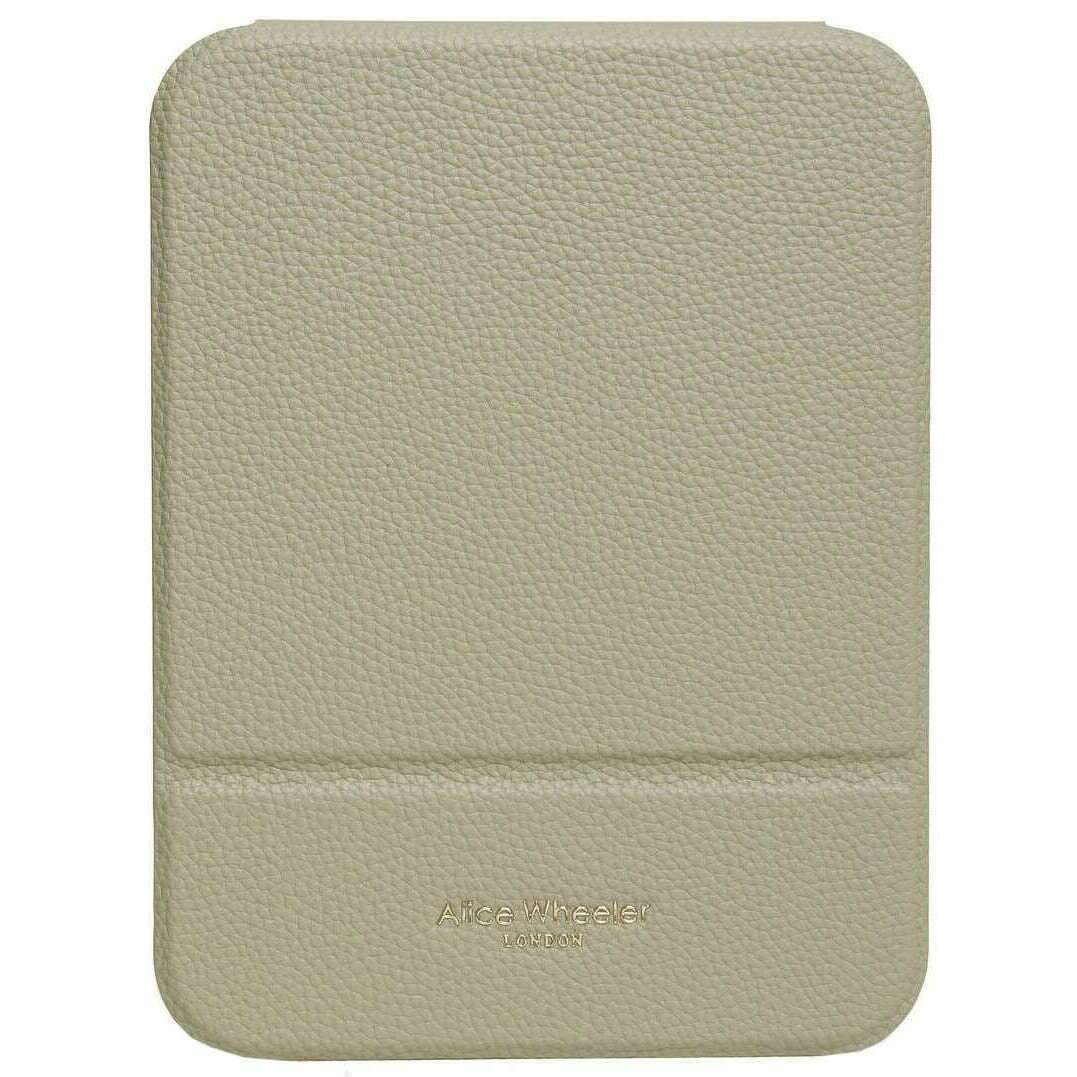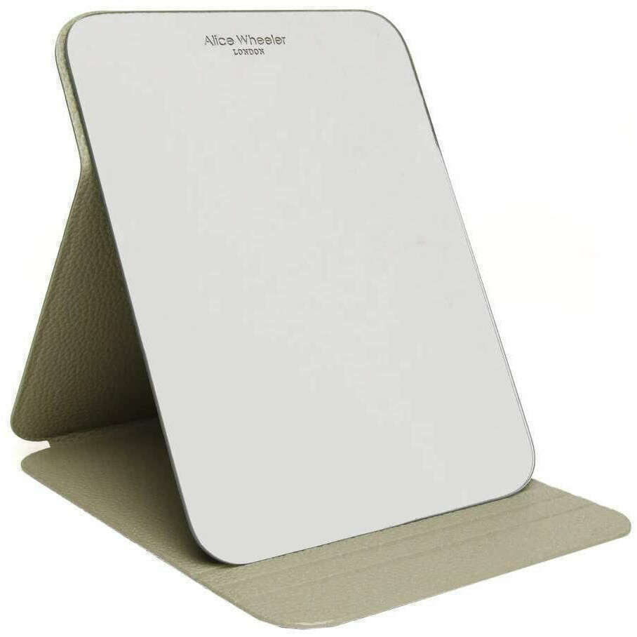 This women's folding travel mirror has been made from 100% vegan faux leather, featured in a green colour and is from the brand Alice Wheeler London. It measures 20cm(height) x 15cm(width). All the mirrors come complete with alice wheeler packaging. The Alice Wheeler London Folding Travel Mirror - Pistachio Green is a must-have if you are a frequent traveller or want a gorgeous portable mirror for your makeup vanity. Featuring a crystal-clear mirror with a sleek frameless design and subtle Alice Wheeler branding printed on the top, and a convertible case that doubles as a case and a stand great for propping up wherever to apply your makeup without the hassle of having to hold the mirror. The lightweight and slim design makes this ideal for travelling.
