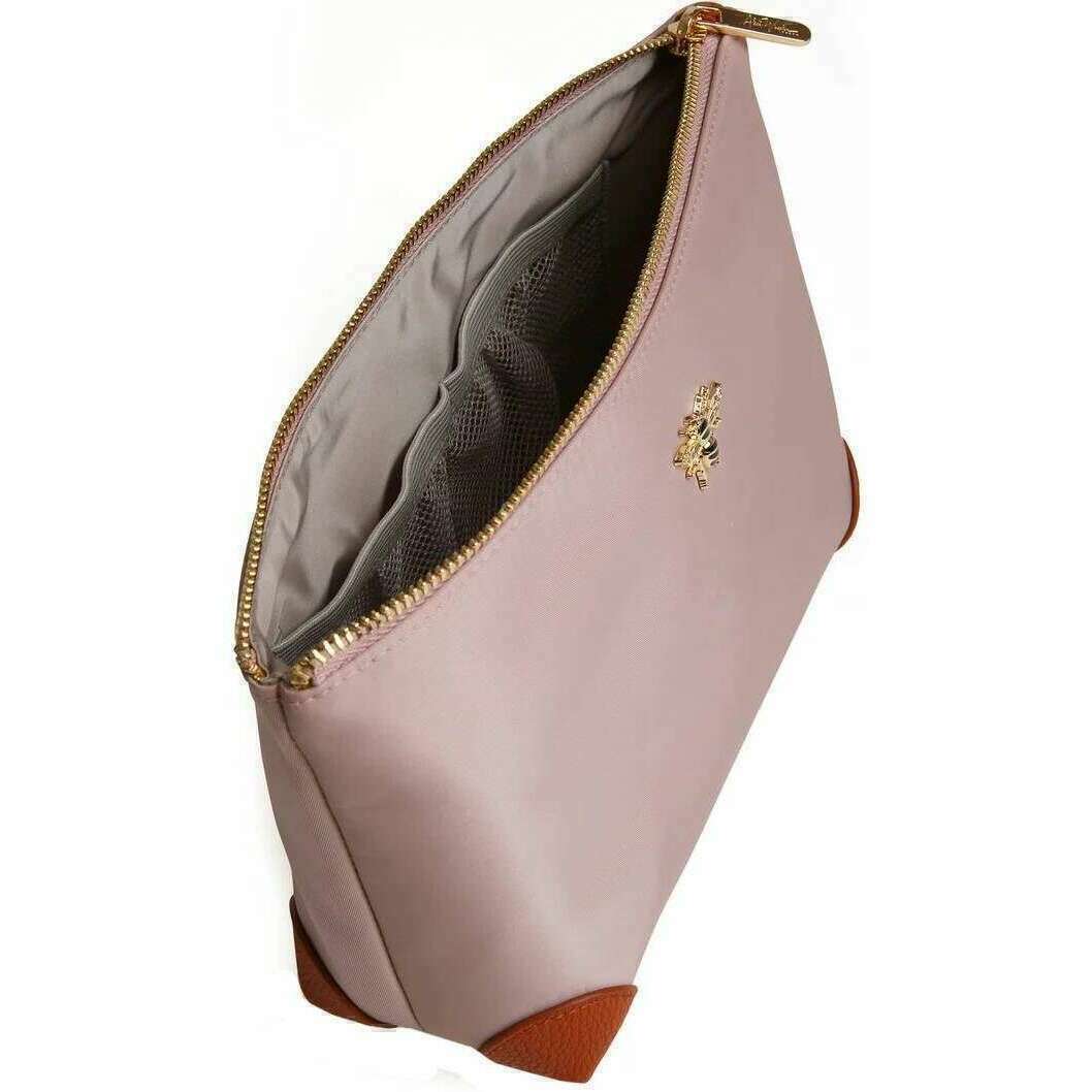 This women's harrow travel bag by the brand Alice Wheeler London is made from 100% lightweight nylon and is showcased in pink. It measures 17cm(height) x 28cm(width) x 8cm(depth). All the bags come complete with alice wheeler packaging. The Alice Wheeler London Harrow Travel Bag - Pink perfect for all types of storage is beautifully designed with a fully lined interior. Whether you are looking to store documents, makeup, toiletries or other items this is the one for you with the great sized main compartment and internal pockets for organisation. Store in your suitcase, gym bag, or your home to keep your items in one place whilst doing it in style. Complete with the stunning honeybee logo adorned to the front.