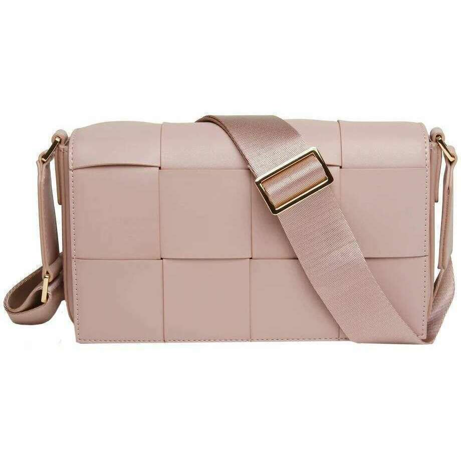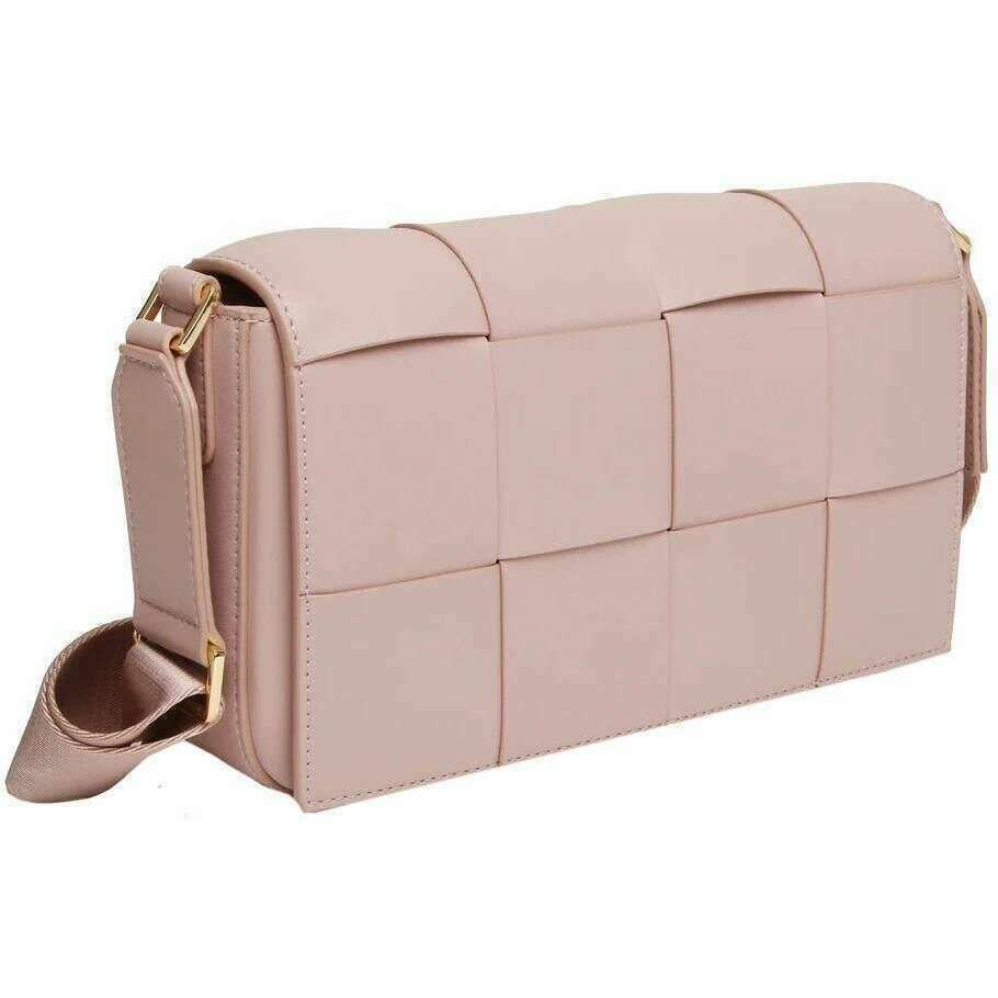 Introducing this women's lisbon crossbody bag by Alice Wheeler London, it is manufactured from 100% nappa finish vegan faux leather in a blush pink colour. It measures 14cm(height) x 23cm(width) x 5.5cm(depth). All the bags come complete with alice wheeler packaging. The Alice Wheeler London Lisbon Crossbody Bag - Blush Pink features a stunning cross lattice design perfect for subtly adding elegance into your style. The adjustable crossbody strap ensures versatile styling options and a comfortable fit customised to you. This bag is the perfect size to fit all of your essentials whatever the occasion with ample storage and an interior pocket for organisation. Crafted with high-quality vegan faux leather means that this purse is completely eco-friendly.