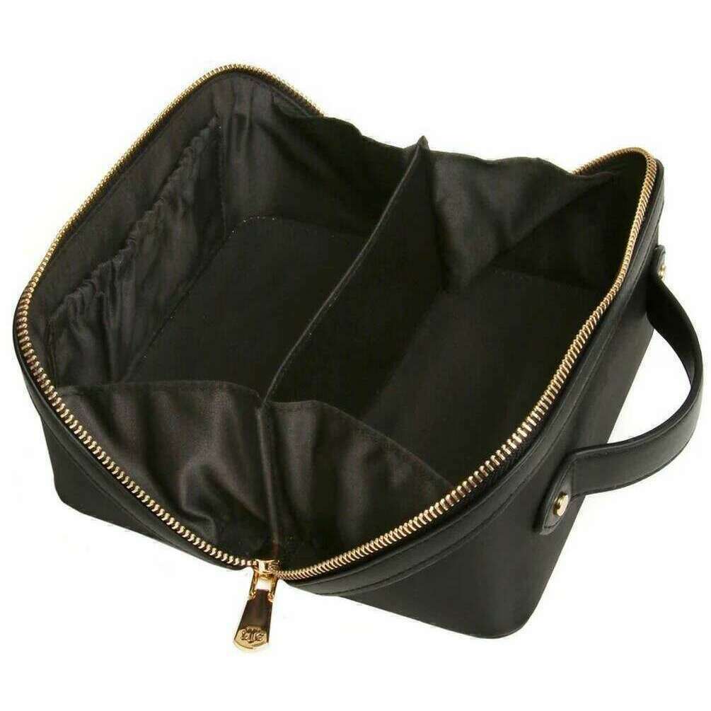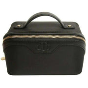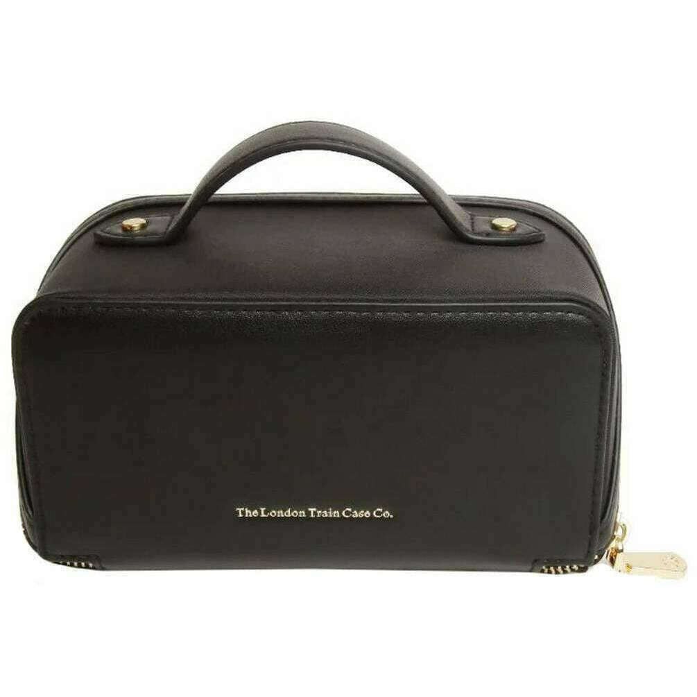 This women's ltc mini train case has been made from 100% vegan faux leather, featured in a black colour and is from the brand Alice Wheeler London. It measures 9.5cm(height) x 18cm(width) x 9.5cm(depth). All the bags come complete with alice wheeler london packaging. The Alice Wheeler London LTC Mini Train Case - Black is a mini version of the popular Train case and is a stylishly cute way to carry your essential toiletries, make-up or other travel essentials. Inside is fully lined and includes internal pockets for your smaller bits plus as a dual main section so it is easy to organise your things. Everything is seals inside securely with its zipped closure and is finished with the debossed branding.