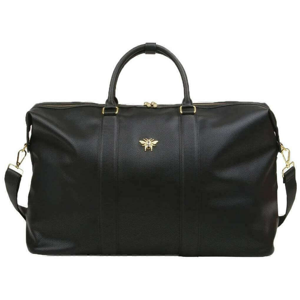 Perfect for women is this Alice Wheeler London black marylebone weekend bag, it is also made from 100% vegan faux leather. It measures 30cm(height) x 50cm(width) x 28cm(depth). All the bags come complete with alice wheeler packaging. The Alice Wheeler London Marylebone Weekend Bag - Black is a must-have if you are a frequent traveller or carry heavy. Perfect for weekend aways, taking to the gym, or having for a carry-on bag. Featuring two carry handles great for wearing on your shoulders, a detachable long shoulder strap, internal pockets for organising and storage, and a lightweight wear for ease when carrying. The sleek and simple design with the signature honeybee logo adorned to it completes this bag making you look the part when on the go. go.