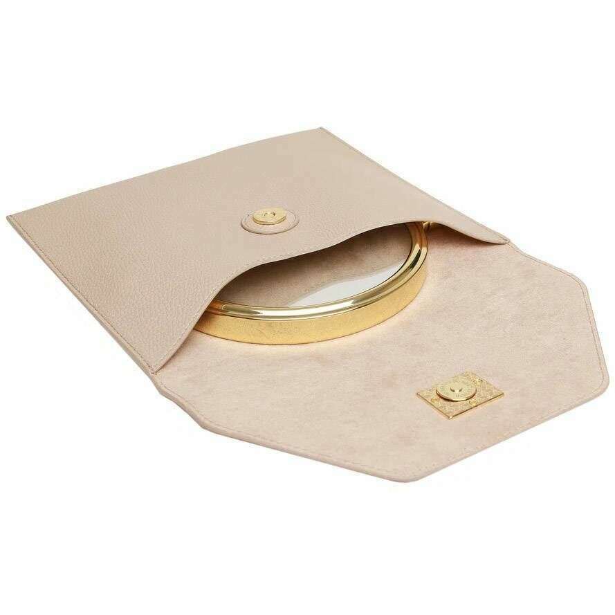 Designer Alice Wheeler London has brought you this women's 100% vegan faux leather compact using stone beige tones. It measures 18.5cm(height) x 20.5cm(width). It is recommended to wipe clean with damp cloth to keep this compact in good condition. All the compacts come complete in alice wheeler london packaging. The Alice Wheeler London Mirror and Case - Stone Beige is a stylish accessory and extremely handy to carry with you when on the go. The beautifully embellished bee logo sits on the front of the case and the press stud closure secures the mirror inside. Inside you will find a 7x magnification mirror with a stand so that you can check up on yourself with ease.