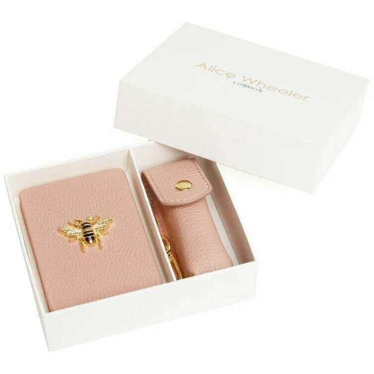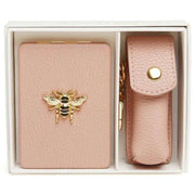 This women's oblong compact mirror and lipstick holder gift set has been made from 100% vegan faux leather, featured in a pink colour and is from the brand Alice Wheeler London. It measures mirror - 8.5cm(height) x 6cm(width) lipstick holder - 8.5cm(height) x 3cm(width) x 3cm(depth). All the compacts come complete with alice wheeler packaging. The Alice Wheeler London Oblong Compact Mirror and Lipstick Holder Gift Set - Pink will make a stunning gift to yourself or someone you love. The beautifully iconic bee embellishment is featured on the mirror, and both have matching colours and hardware, making them a stylish matching pair. The mirror is great for everyday touch ups, and the lipstick holder is perfect for protecting your favourite everyday lipstick in style. These will be a perfect addition to your everyday bag, adding convenience.